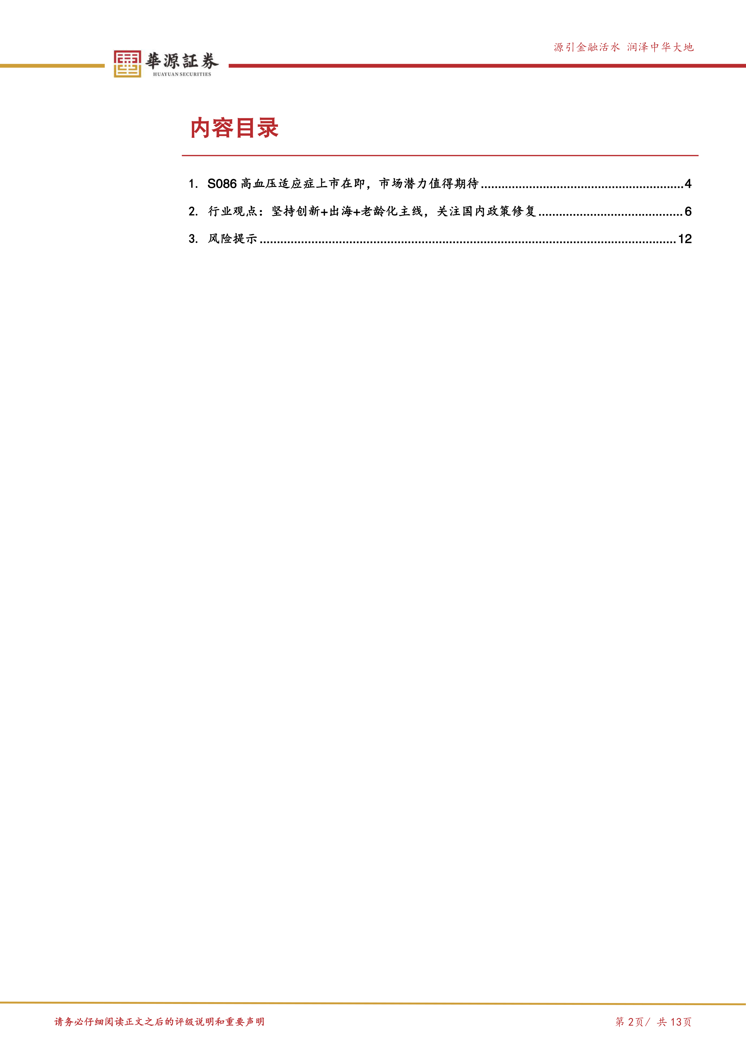 本报告的核心观点是:信立泰公司自主研发的ARNI类药物S086即将上市,其在高血压治疗领域的市场潜力巨大,值得重点推荐。此外,报告分析了医药行业整体市场表现,并基于“创新+出海+老龄化”的主线,提出了2025年医药行业投资建议,重点关注创新药械、出海、国产替代、老龄化及院外消费、高壁垒行业以及AI医疗等领域。