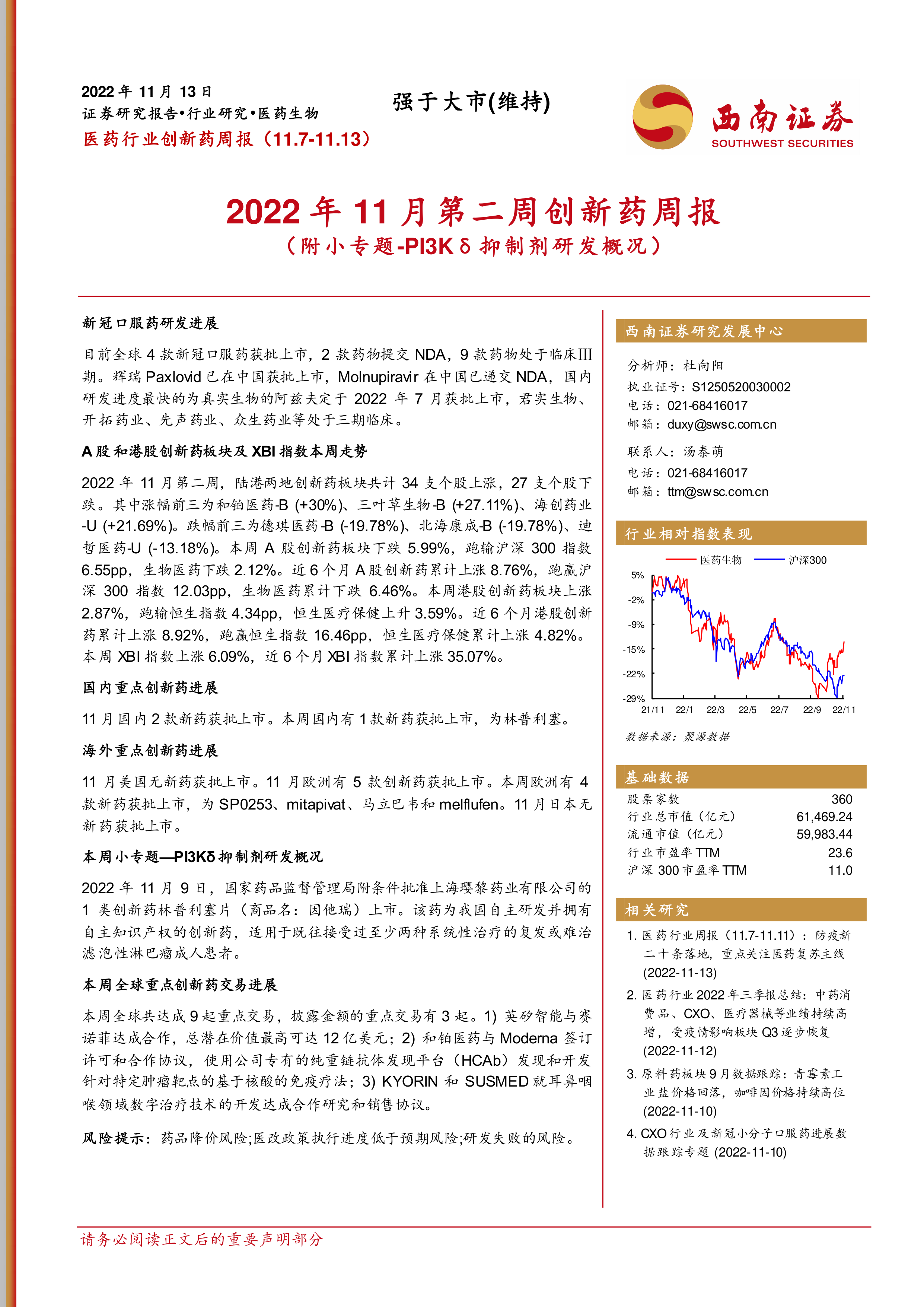 2022年11月第二周创新药周报(附小专题-PI3Kδ抑制剂研发概况)