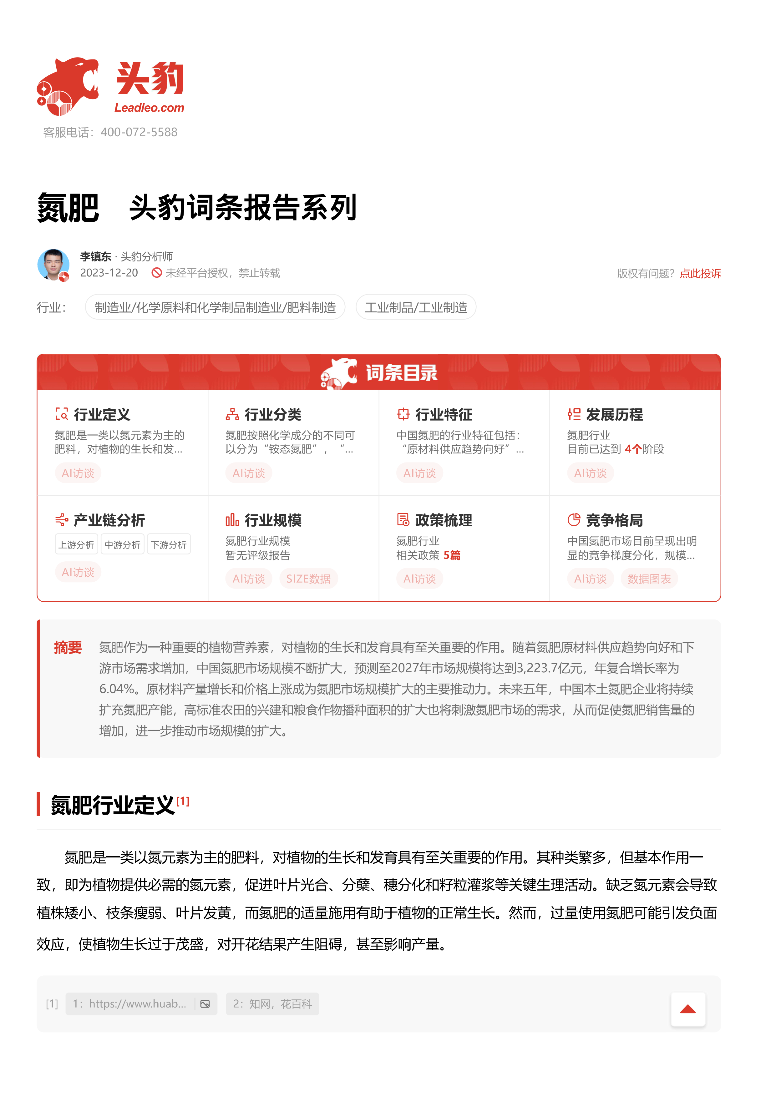 氮肥 头豹词条报告系列