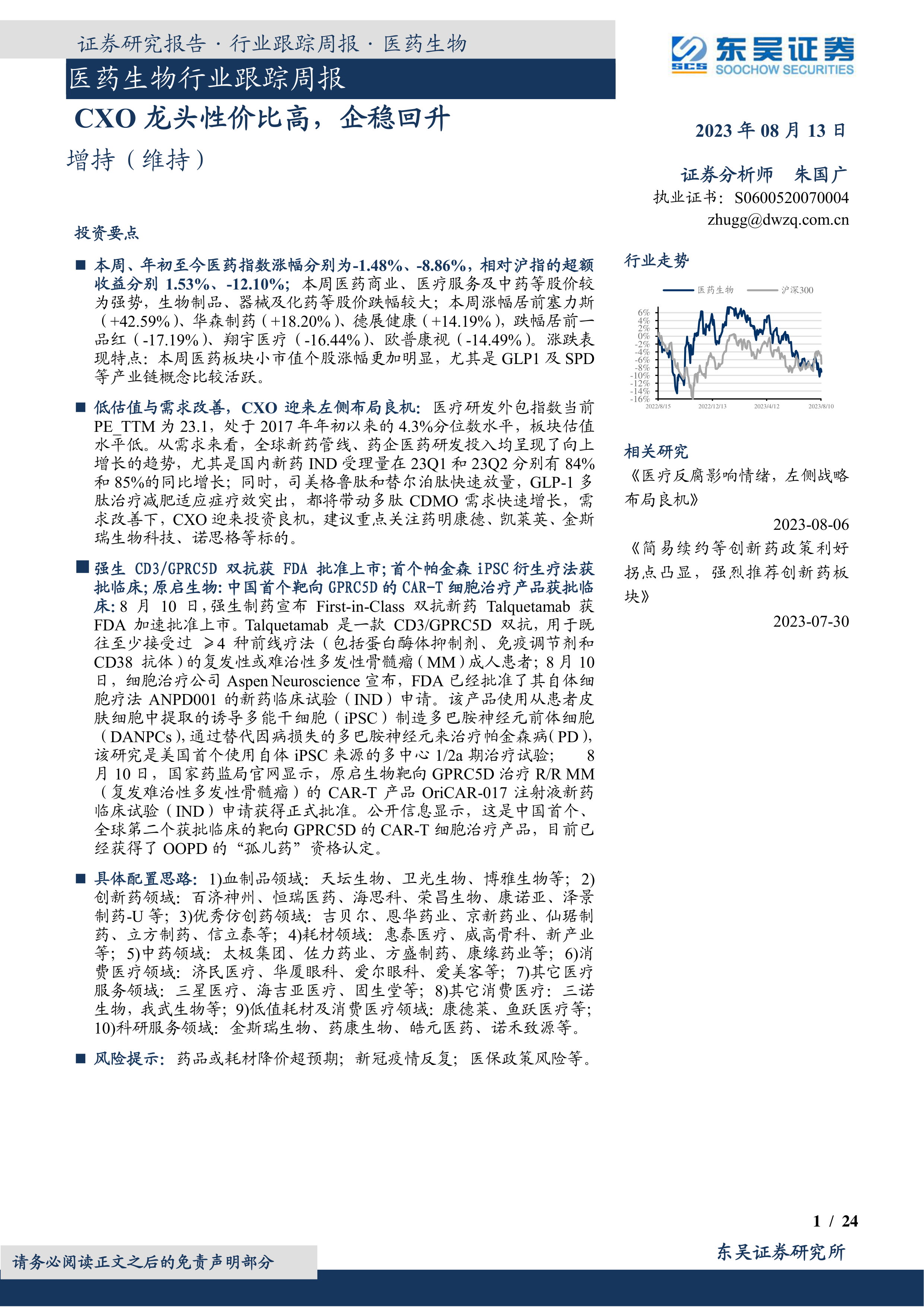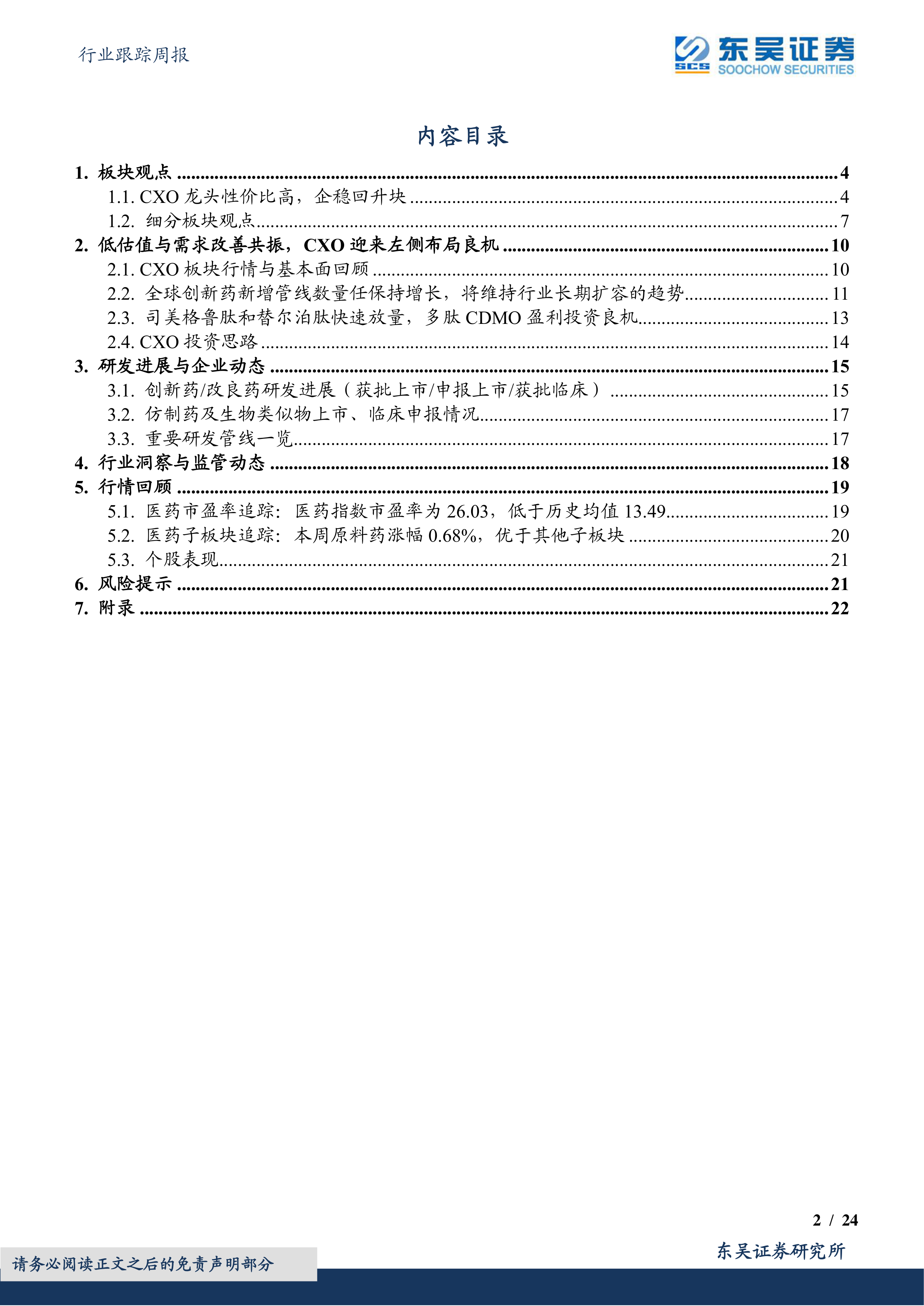 本报告详细分析了医药生物行业,特别是CXO板块的市场现状、发展趋势以及投资机会。主要内容包括: