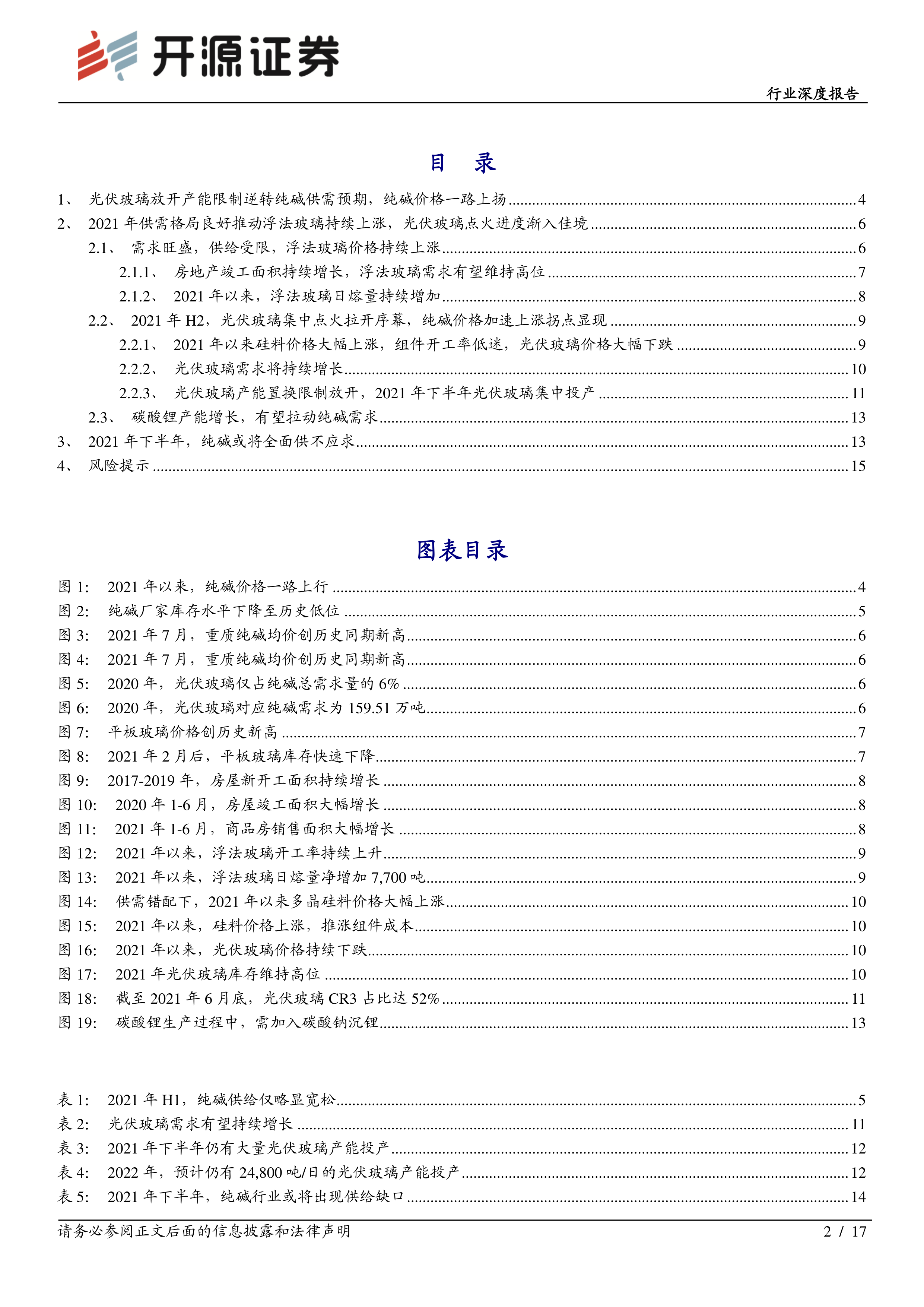 本报告的核心观点是:2021年下半年,纯碱行业将出现供不应求的局面,价格将加速上涨。这一趋势主要由光伏玻璃产能的集中释放和浮法玻璃需求的持续增长共同驱动,而纯碱产能的增长有限,难以满足激增的需求。