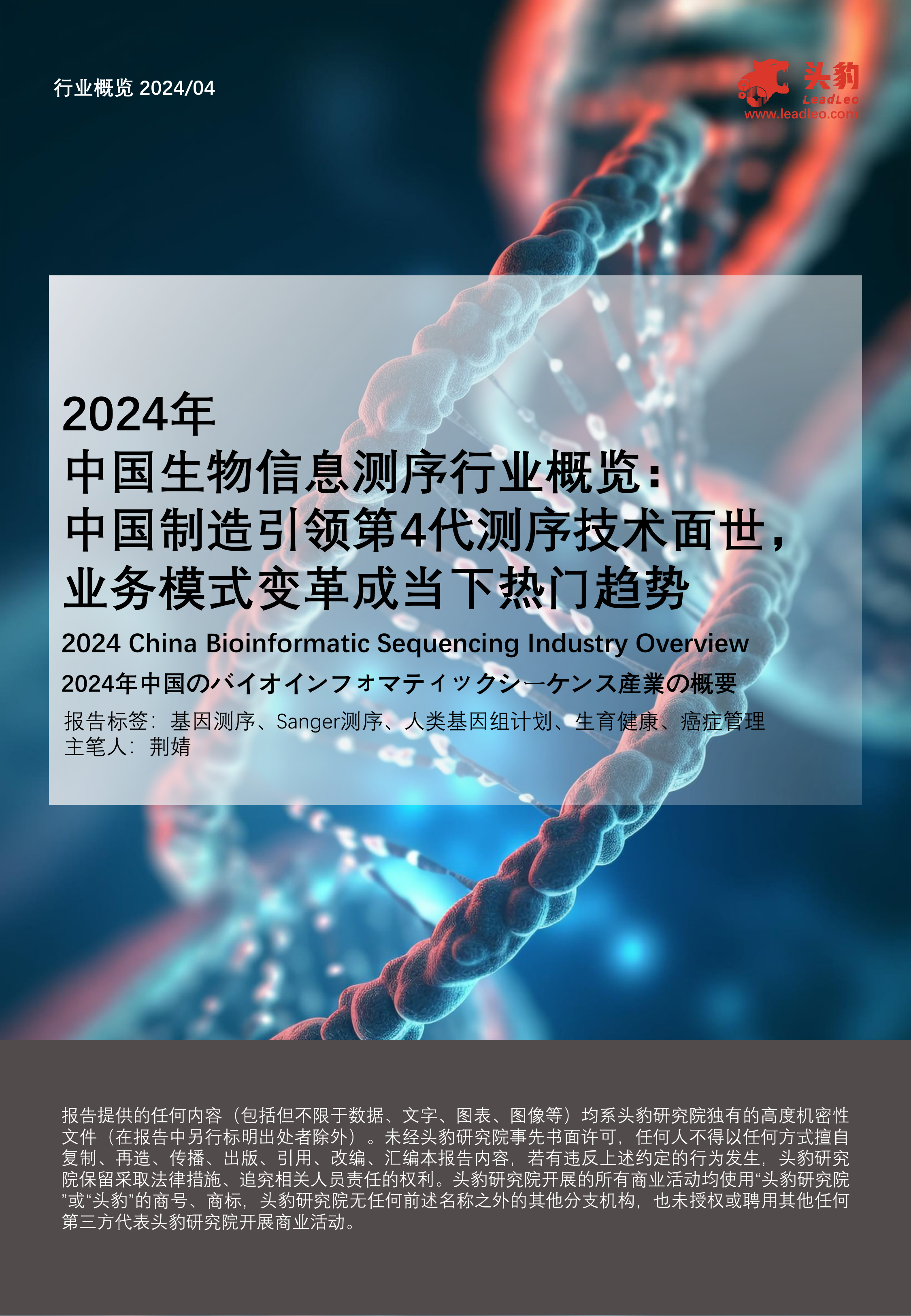2024年中国生物信息测序行业概览:中国制造引领第4代测序技术面世,业务模式变革成当下热门趋势