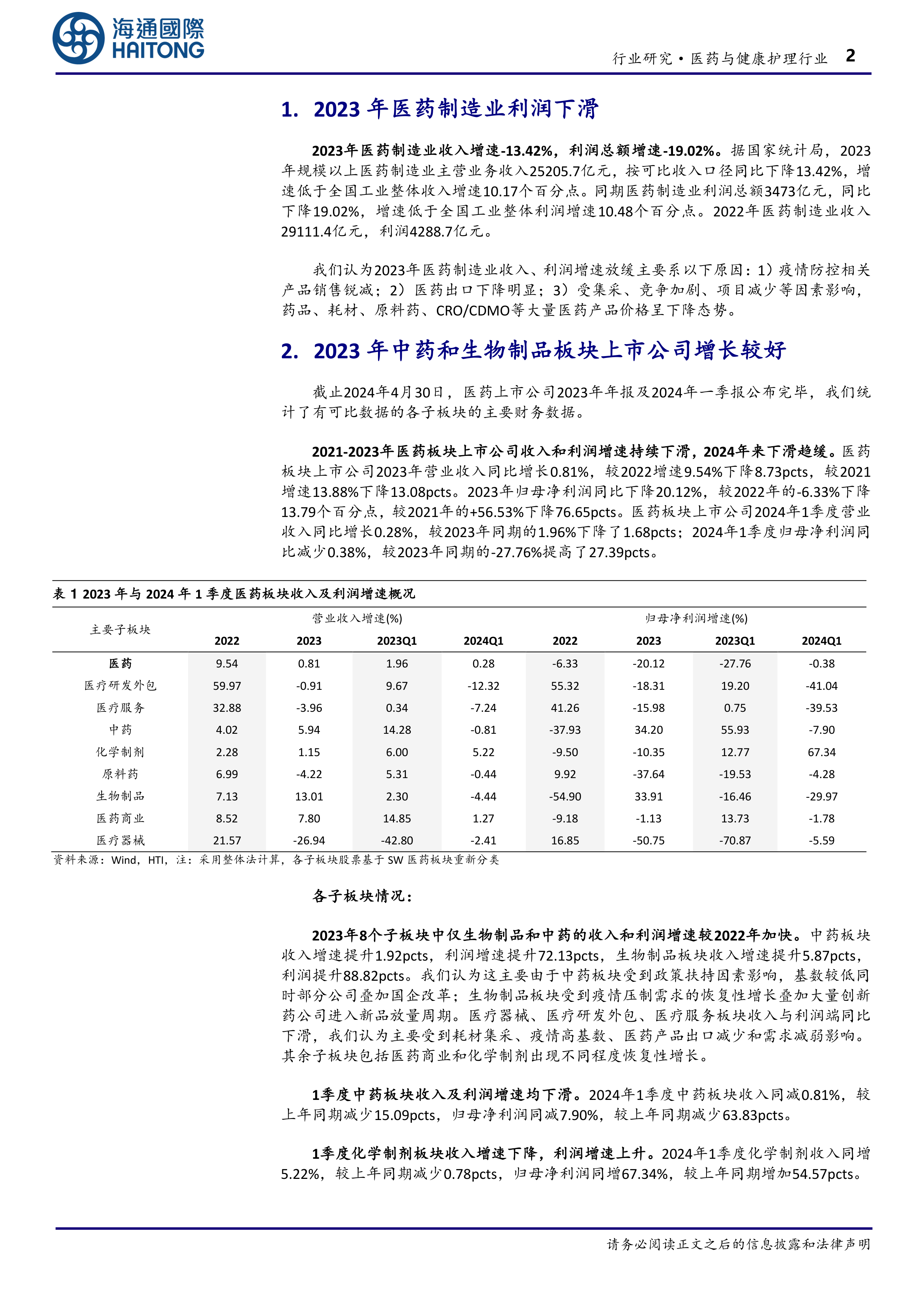 医药与健康护理行业月报:23年年报&24年一季报总结与展望