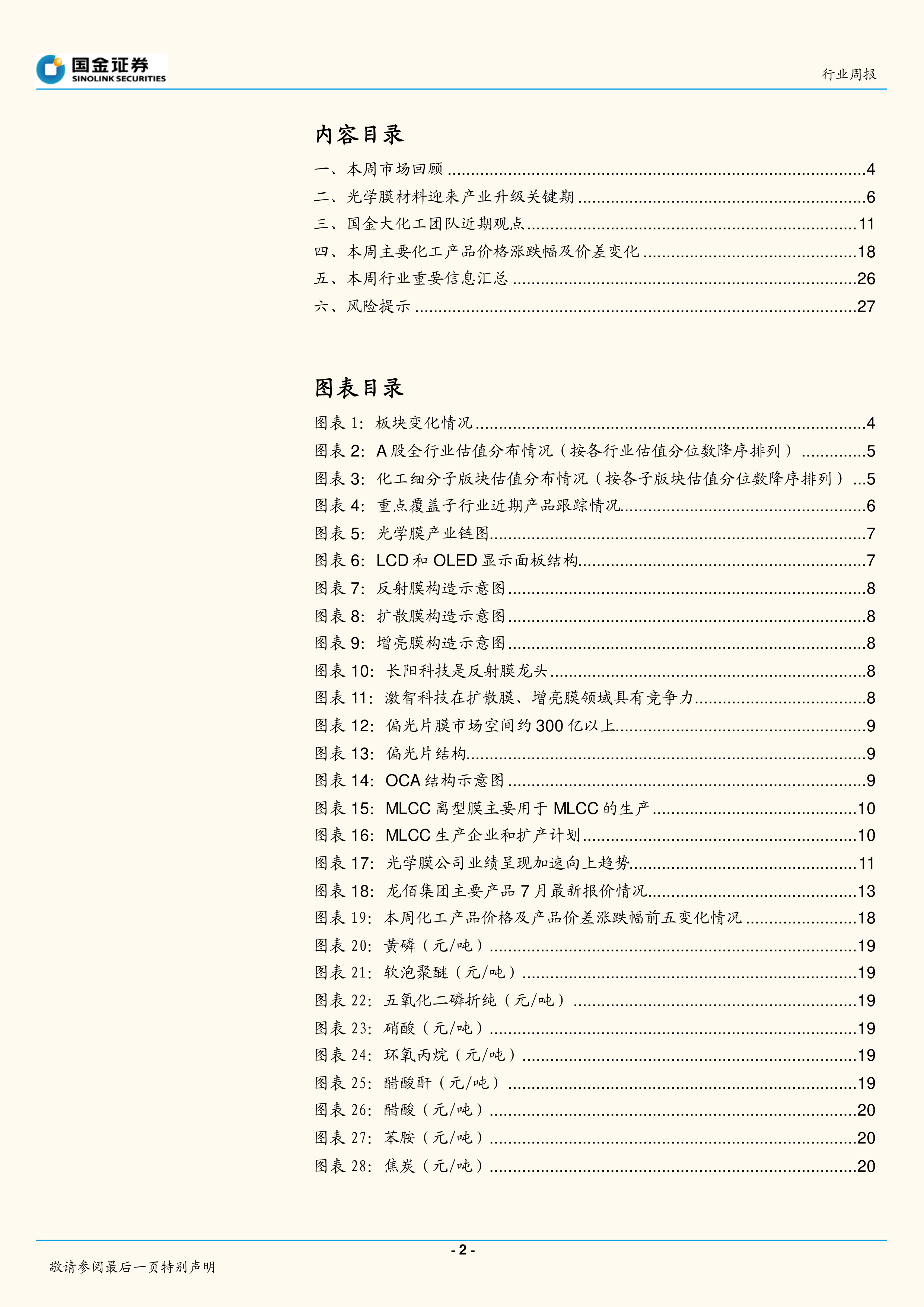 基础化工行业研究周报:光学膜产业升级,板块业绩共振向上