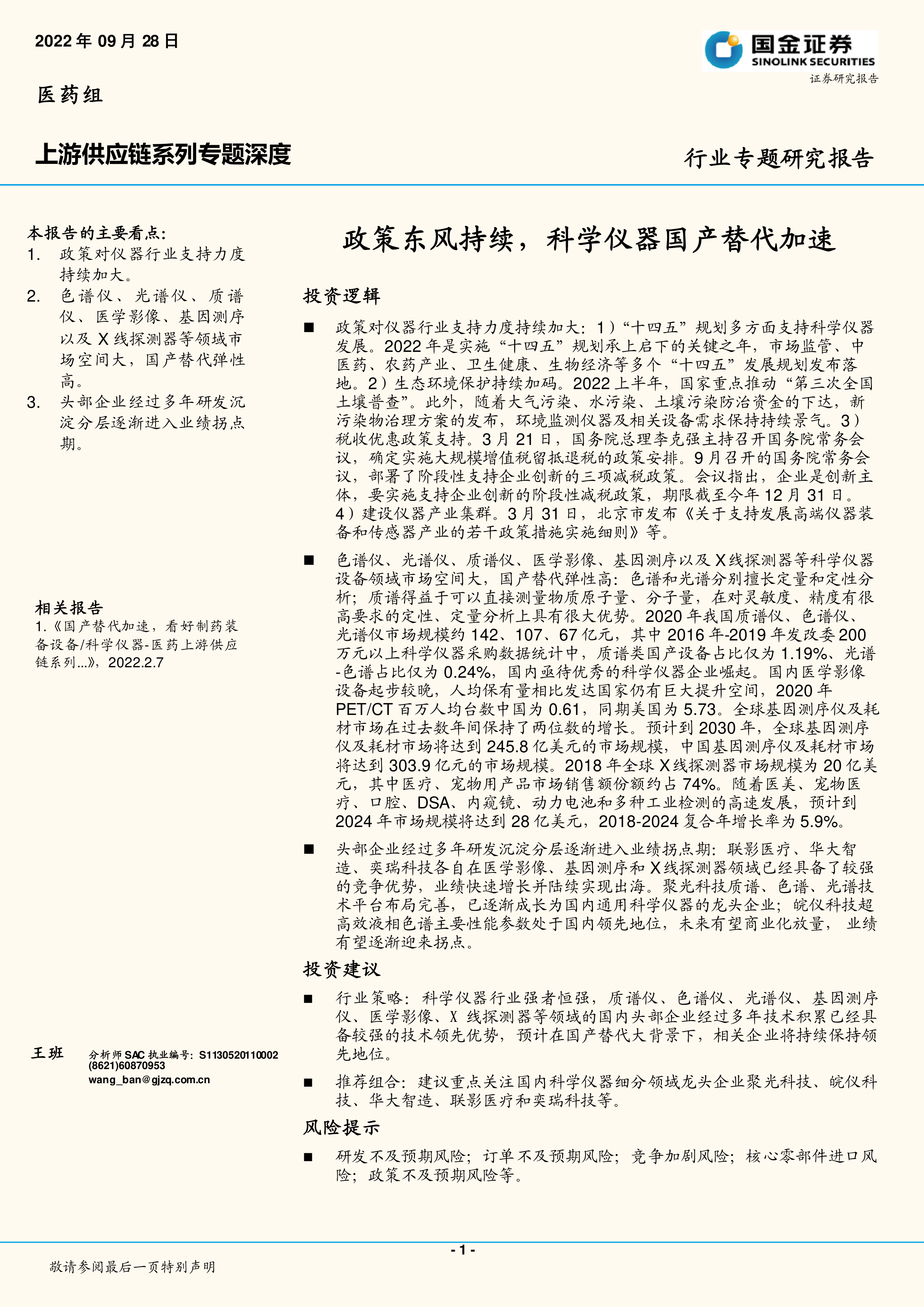 医药行业上游供应链系列专题深度:政策东风持续,科学仪器国产替代加速
