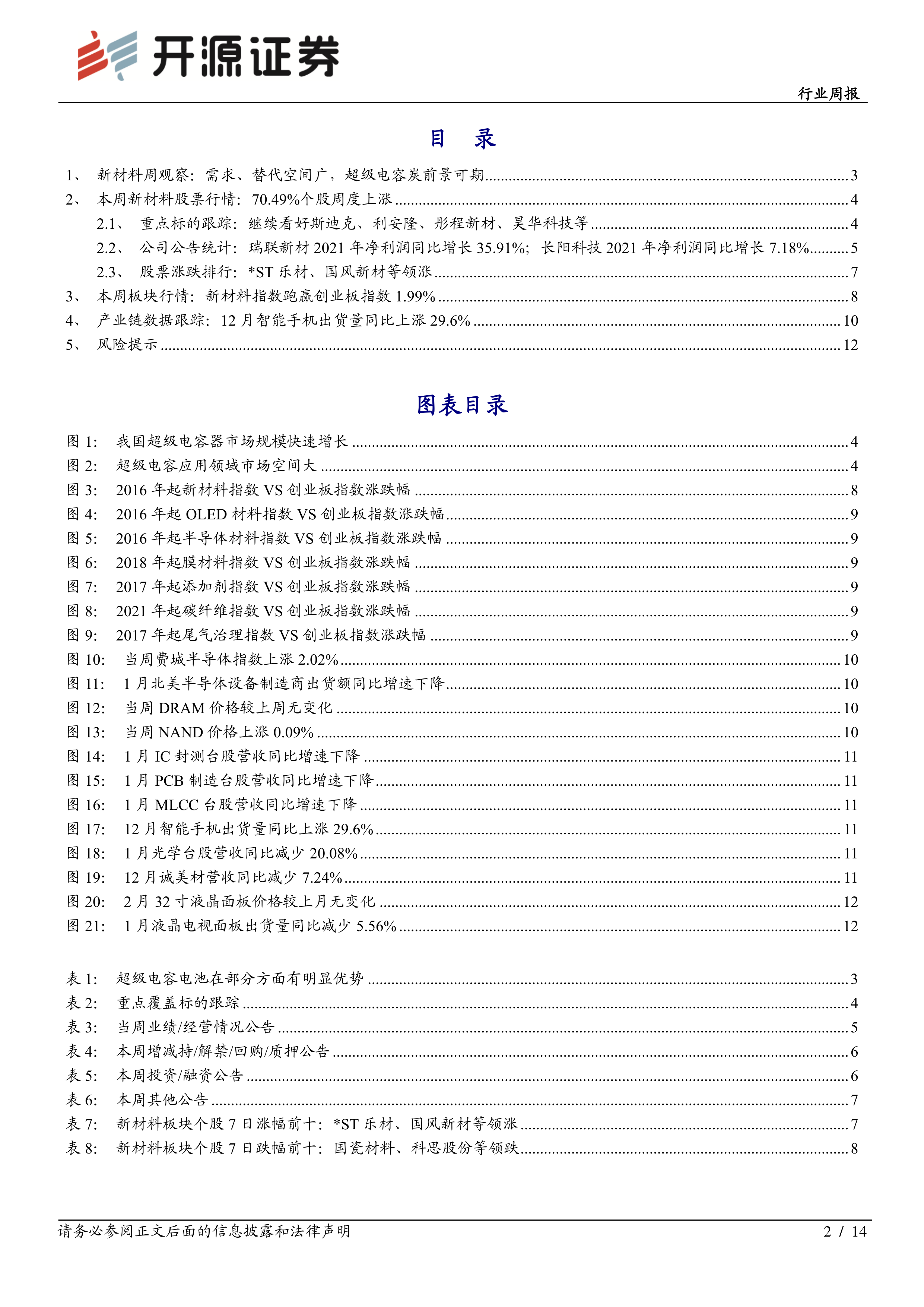 报告最后列出了部分受益于新材料行业发展,特别是功能膜材料、高端电子材料和新能源材料领域的上市公司,并提示了技术突破不及预期、行业竞争加剧、原材料价格波动等潜在风险。