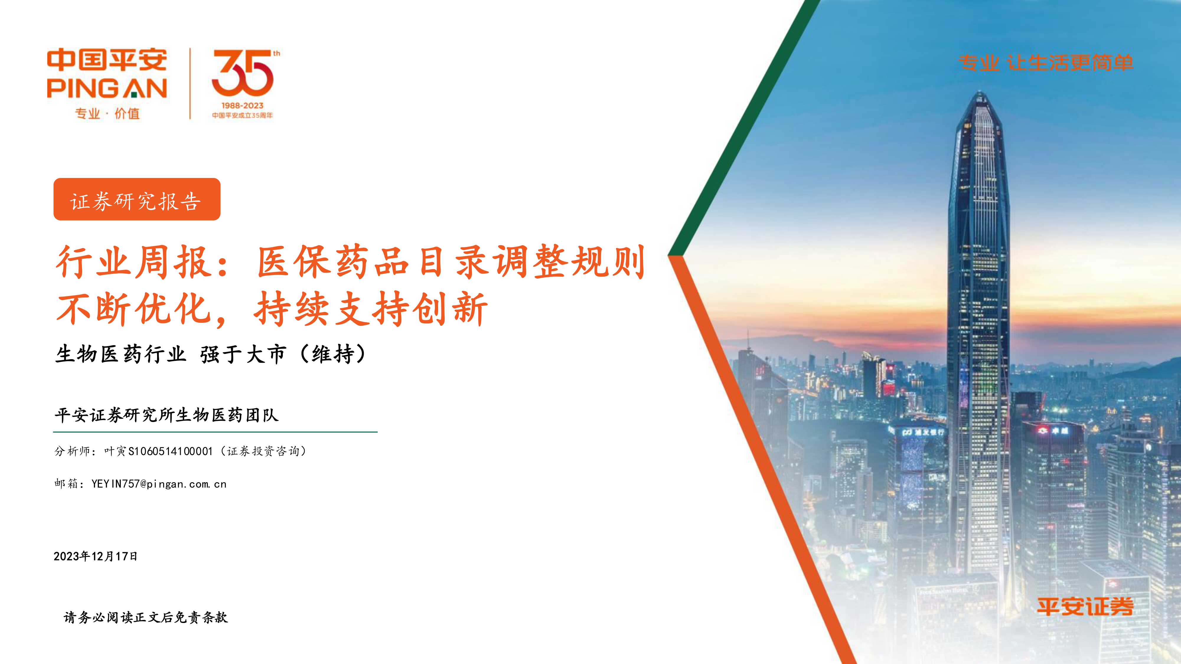 本报告基于2023年版国家医保药品目录调整,对生物医药行业进行了深入分析。报告认为,医保目录调整体现了国家对创新药的支持和对特定医疗领域的关注,并据此提出了三大投资主线及多个重点关注公司。 报告同时提供了行业要闻、市场行情回顾以及投资评级,为投资者提供了全面的行业分析和投资建议。 然而,投资者需注意报告中提到的风险提示,例如政策风险、研发风险和公司经营风险等,并进行独立判断,谨慎投资。