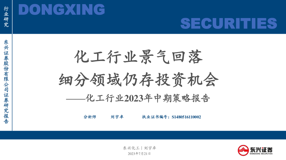 化工行业2023年中期策略报告:化工行业景气回落 细分领域仍存投资机会