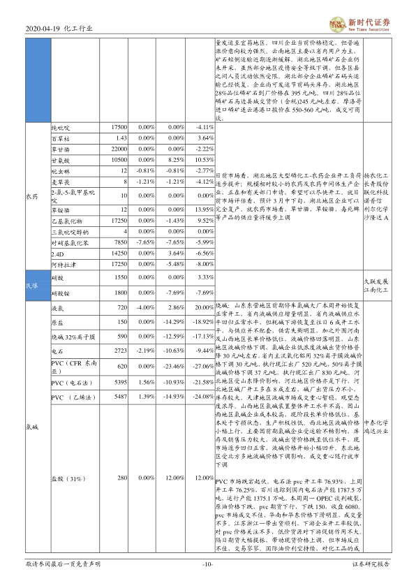 本报告对2020年4月化工行业进行了全面分析,指出行业整体景气度低迷,但部分逆周期扩张的行业龙头企业以及农药行业具有长期投资价值。报告详细分析了国际油价下跌、疫情影响、口罩需求以及化工产品价格波动等因素对行业的影响,并对重点公司和化工产品的市场表现进行了深入解读,为投资者提供了有价值的参考信息。 报告也指出了环保督查不及预期、下游需求疲软以及中美贸易关系恶化等潜在风险。 投资者应结合自身风险承受能力和投资目标,谨慎决策。