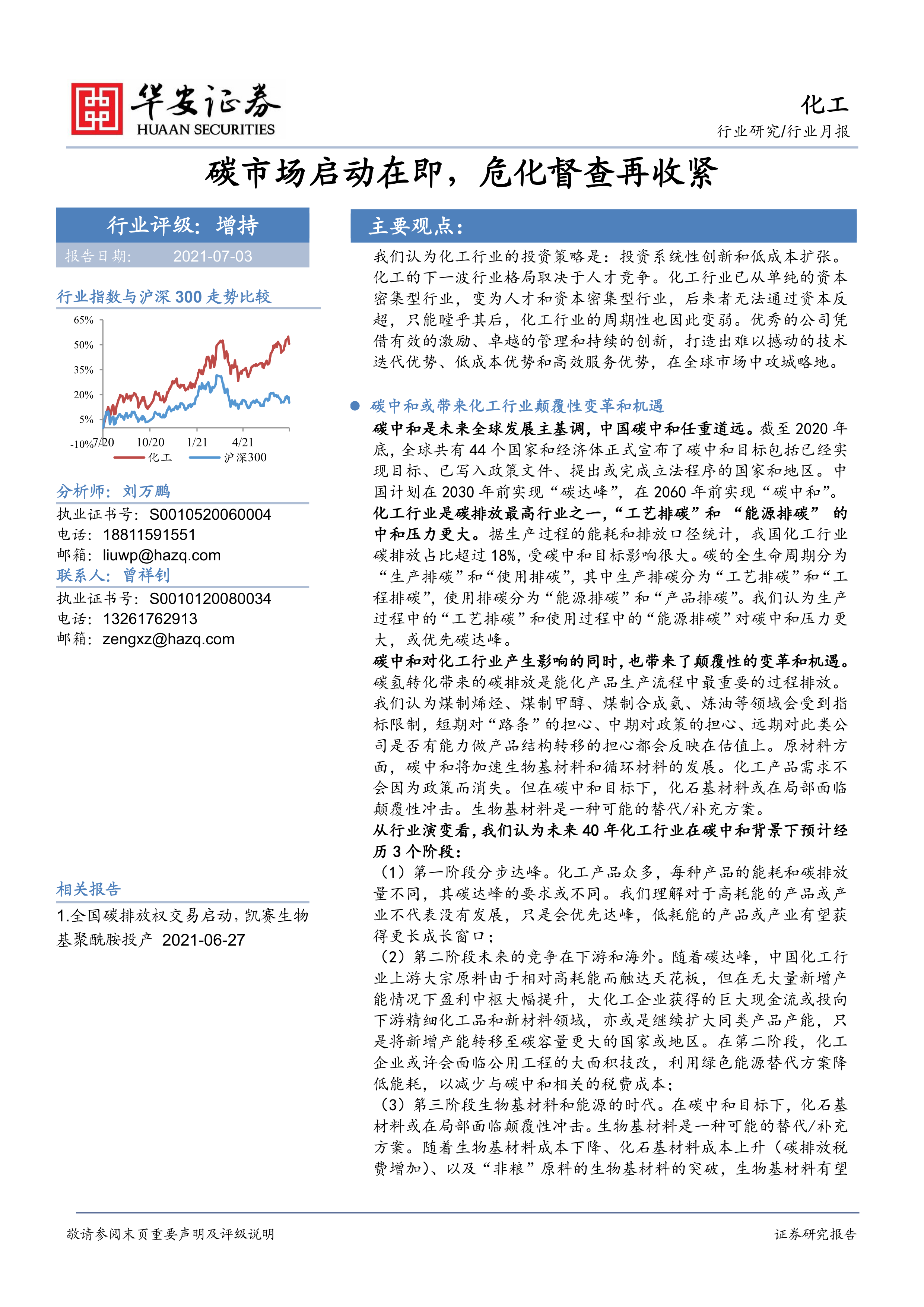 化工行业月报:碳市场启动在即,危化督查再收紧