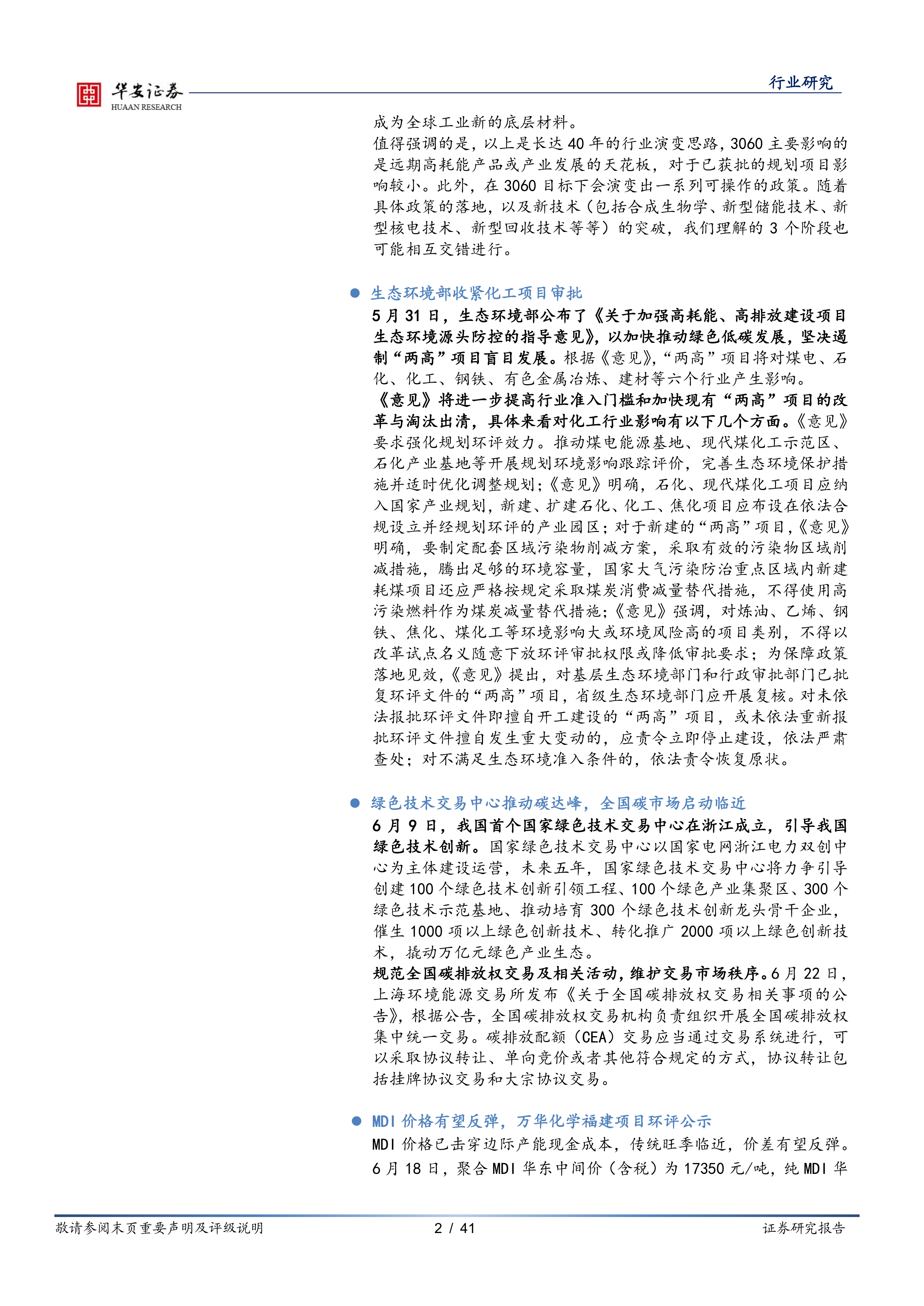 全国碳市场启动在即: 报告介绍了国家绿色技术交易中心的成立以及全国碳排放权交易相关规则的发布,指出全国碳市场启动临近,这将对化工企业的碳排放管理和成本产生直接影响。