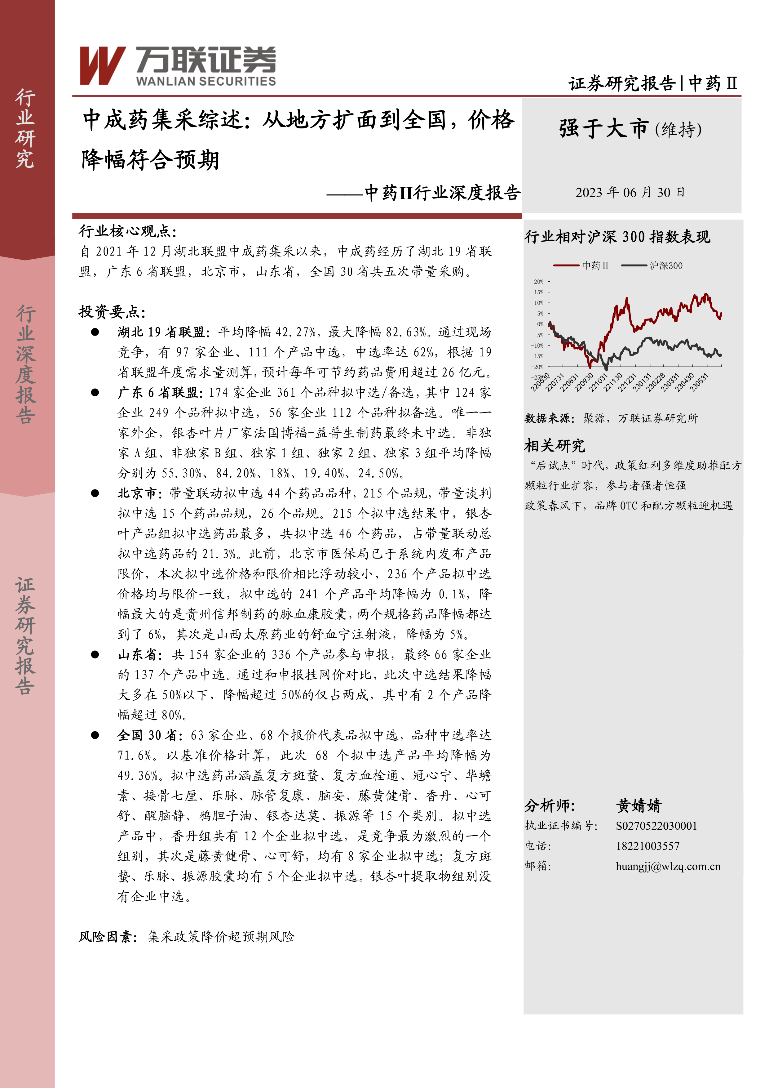 中药Ⅱ行业深度报告:中成药集采综述:从地方扩面到全国,价格降幅符合预期