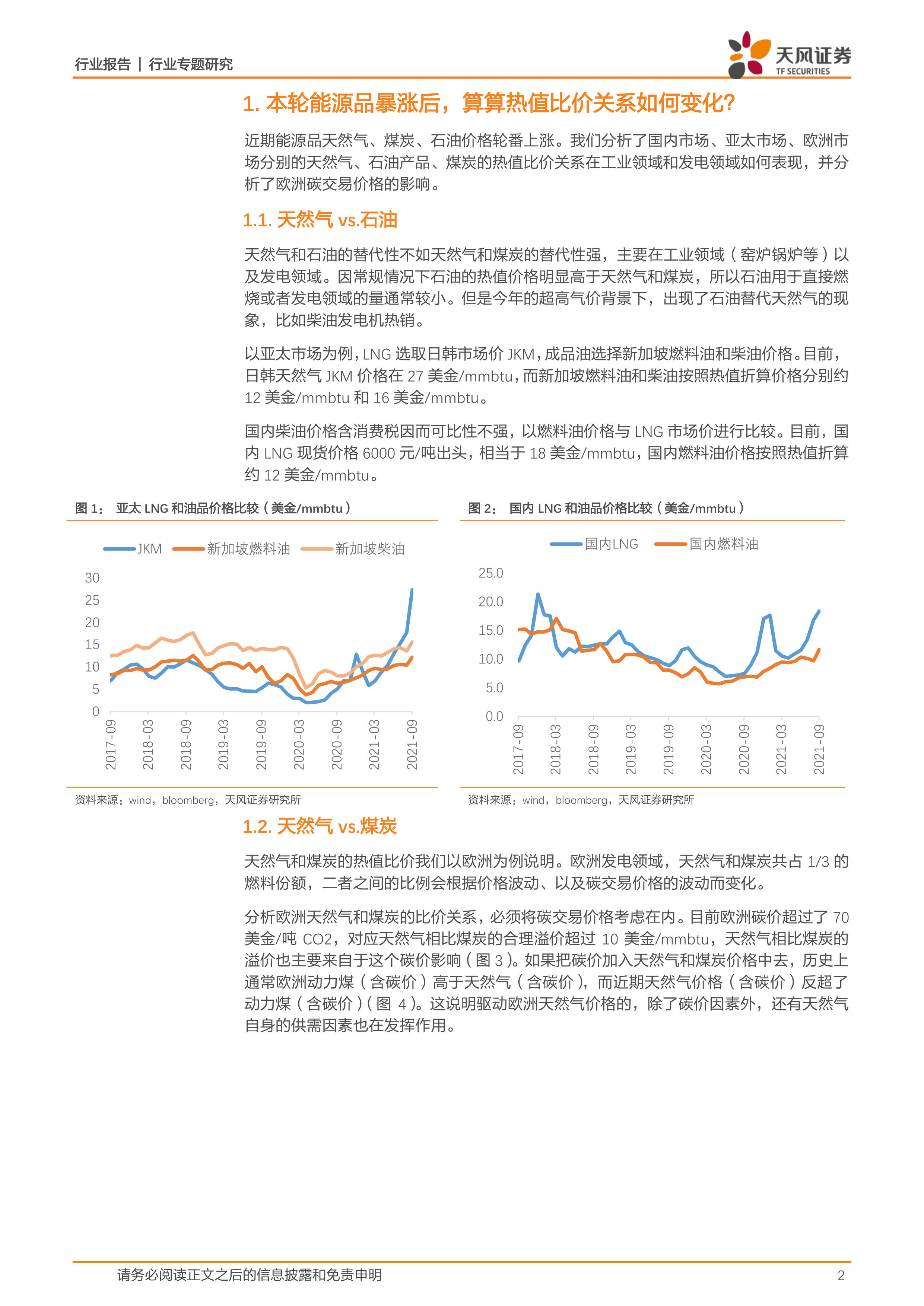 风险提示:能源品涨价过快压制下游需求的风险;天然气热值价格显著超出石油和煤炭导致阶段性被替代的风险;疫情变化影响宏观经济的风险。