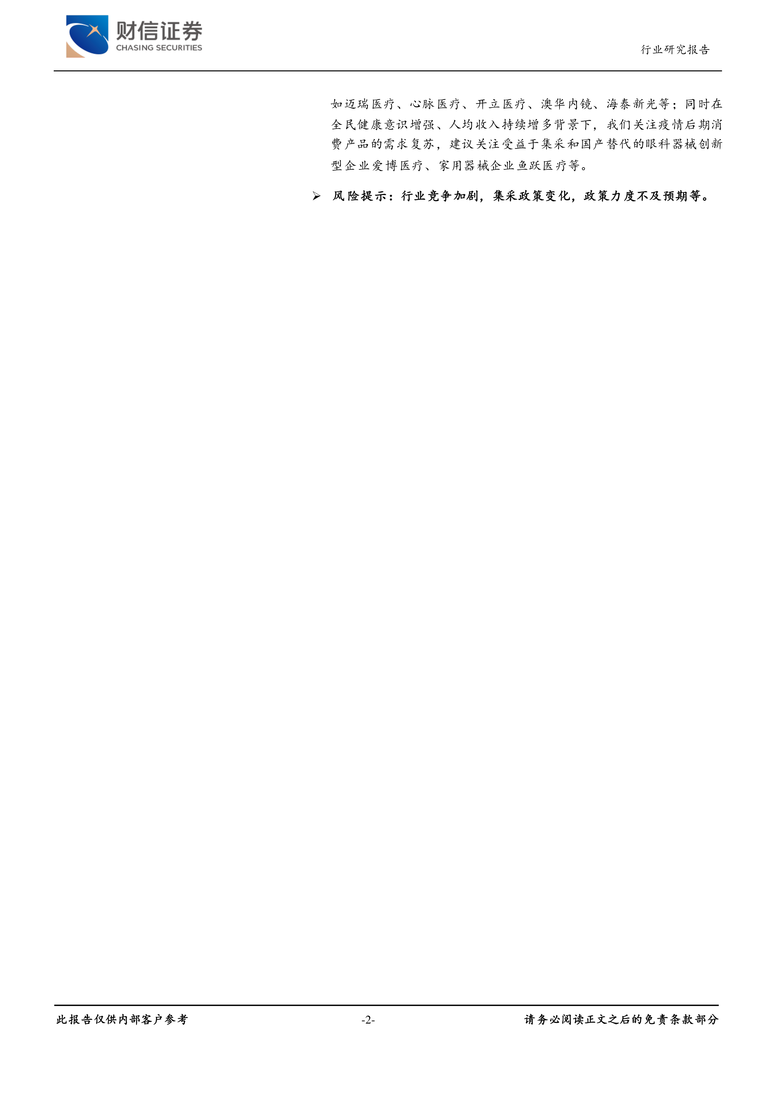 风险提示:行业竞争加剧,集采政策变化,政策力度不及预期等。