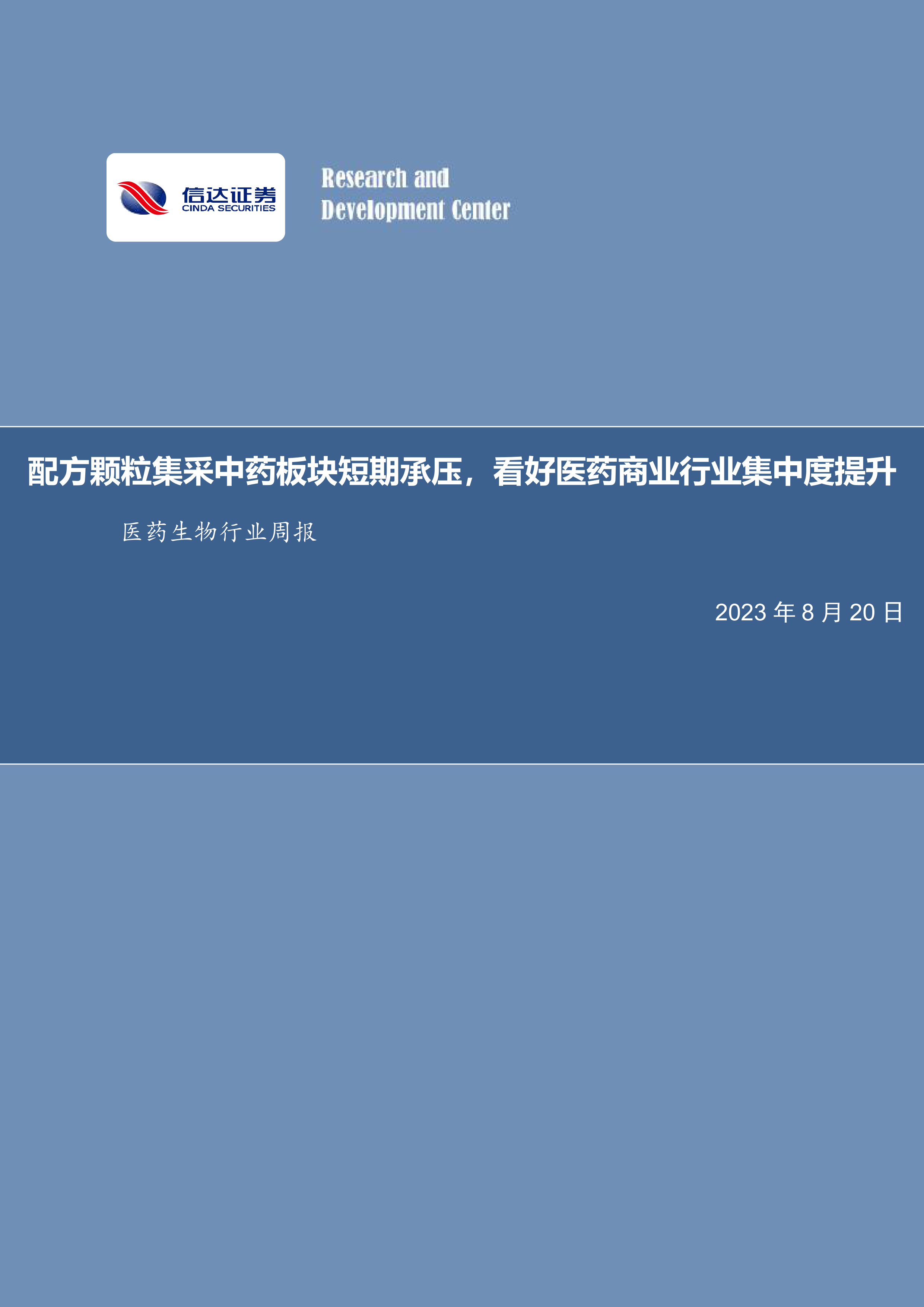 医药生物行业周报:配方颗粒集采中药板块短期承压,看好医药商业行业集中度提升