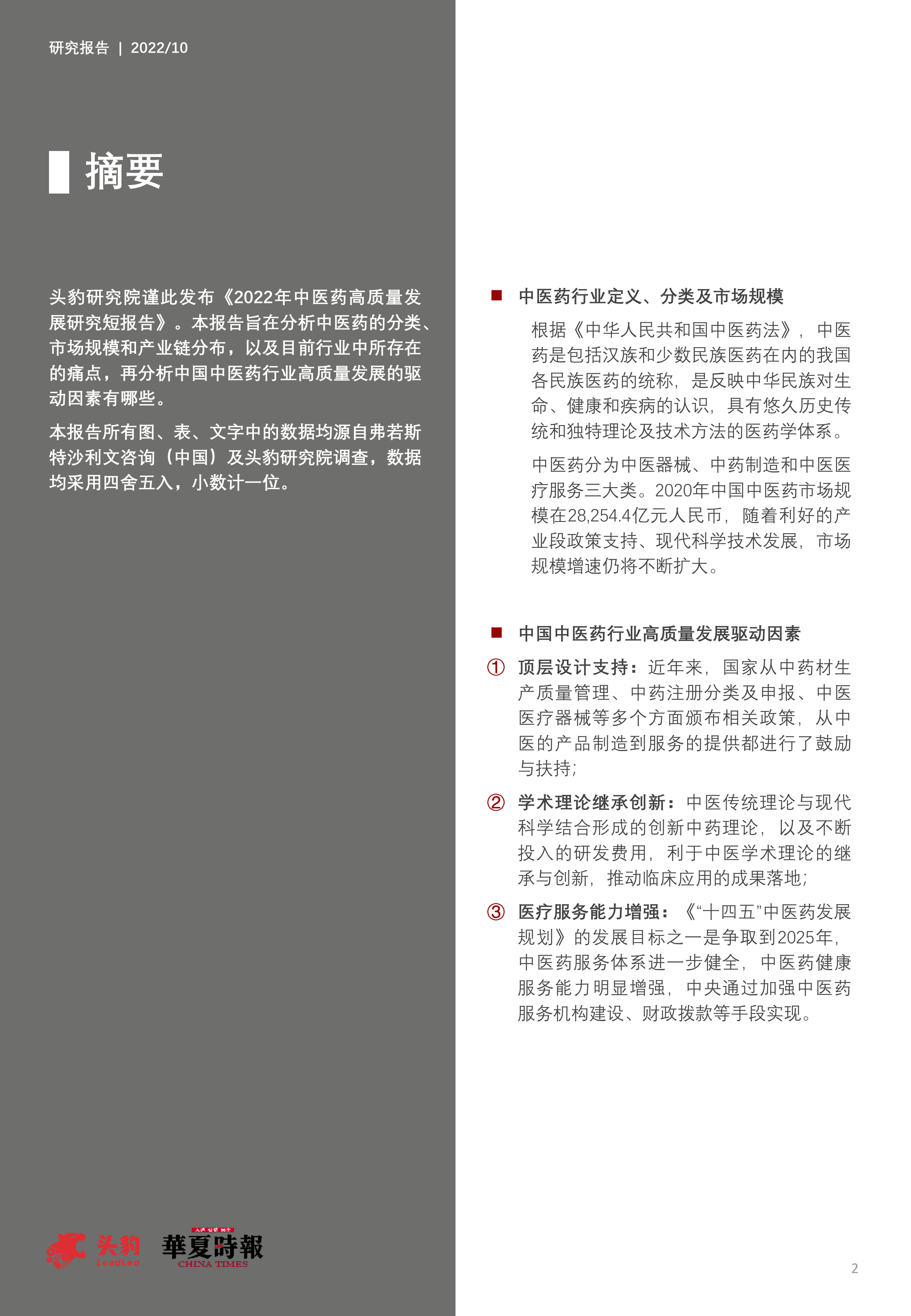 本节详细阐述了推动中医药行业高质量发展的三个关键因素: