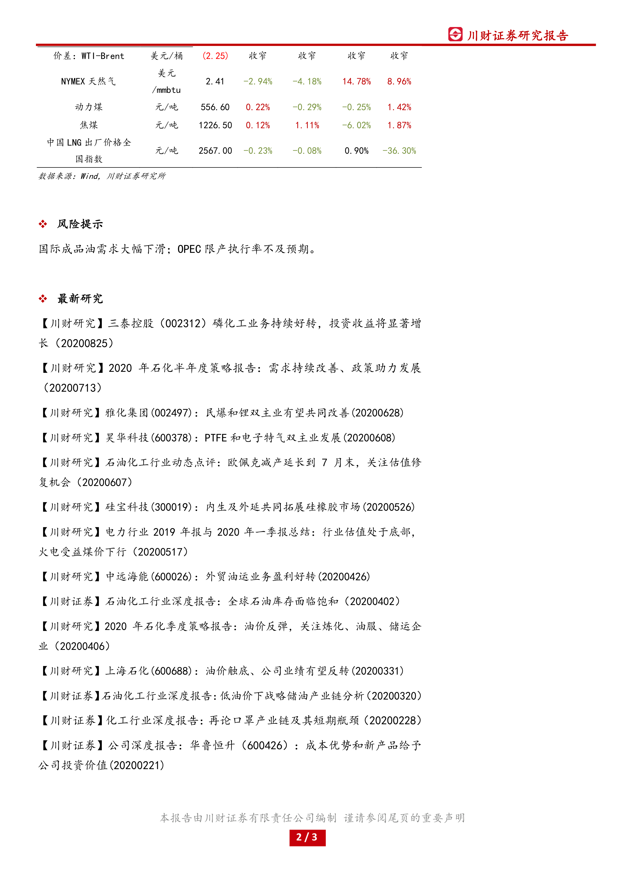 报告指出了国际成品油需求大幅下滑和OPEC限产执行率不及预期等风险因素。