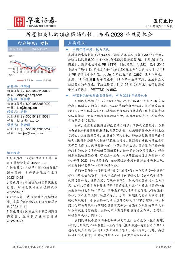 医药生物行业周报:新冠相关标的领涨医药行情,布局2023年投资机会