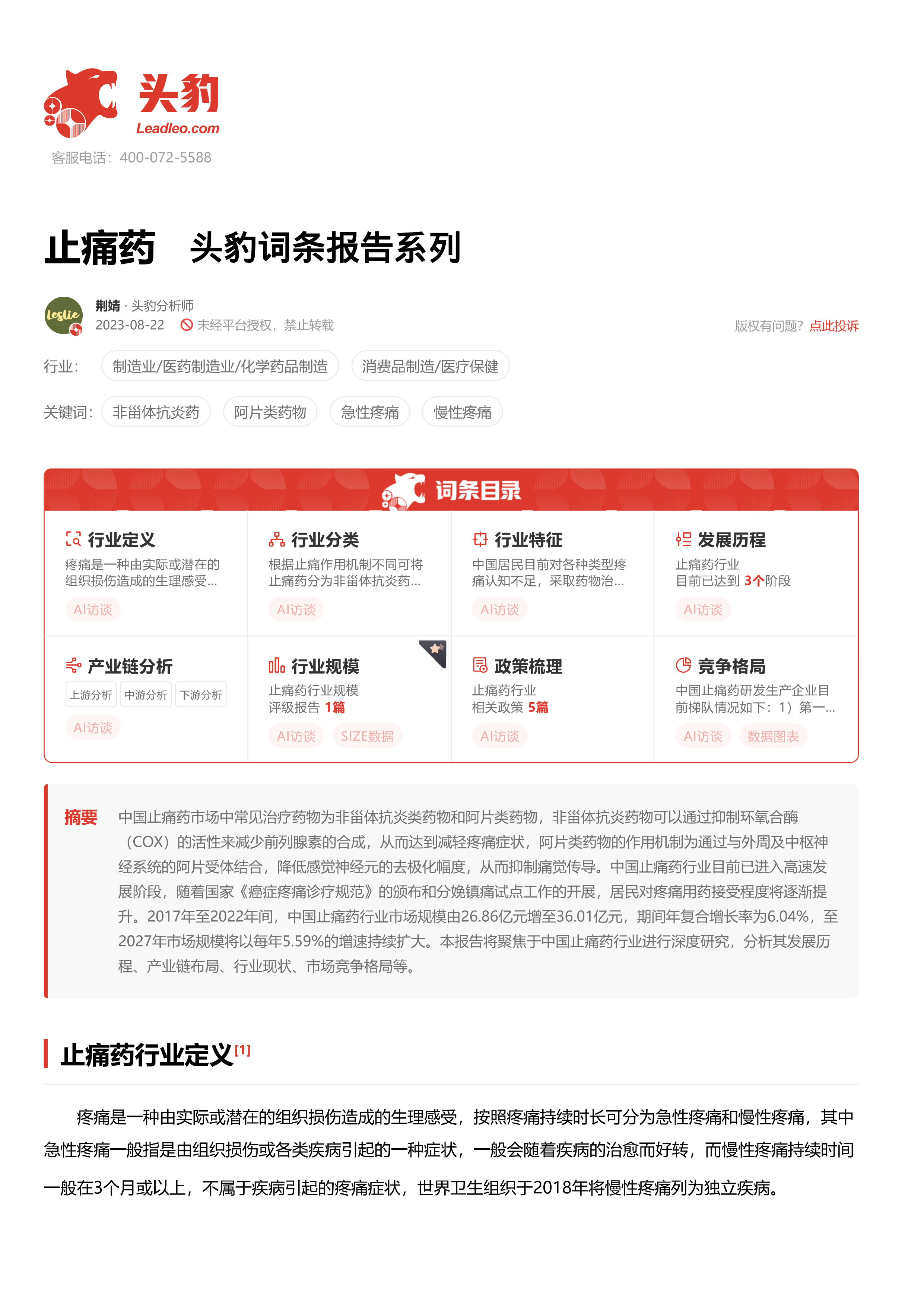 止痛药 头豹词条报告系列