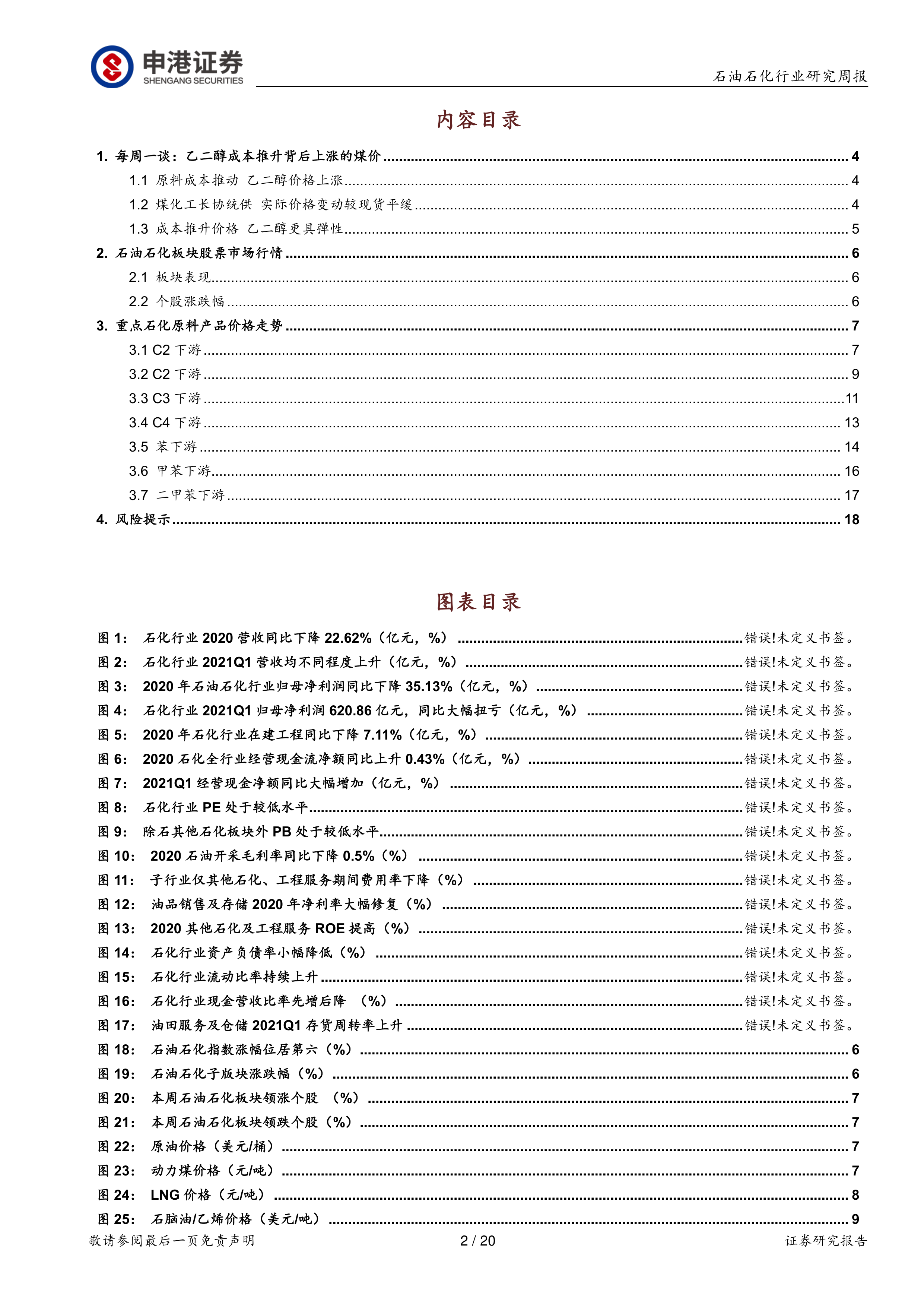 每周一谈:乙二醇成本推升背后上涨的煤价: 该部分详细分析了乙二醇价格上涨的原因,指出是煤价上涨带来的成本推动效应,并解释了长协采购机制对成本影响的缓冲作用,以及乙二醇价格相对于原料煤价格更高的弹性。 具体包括: