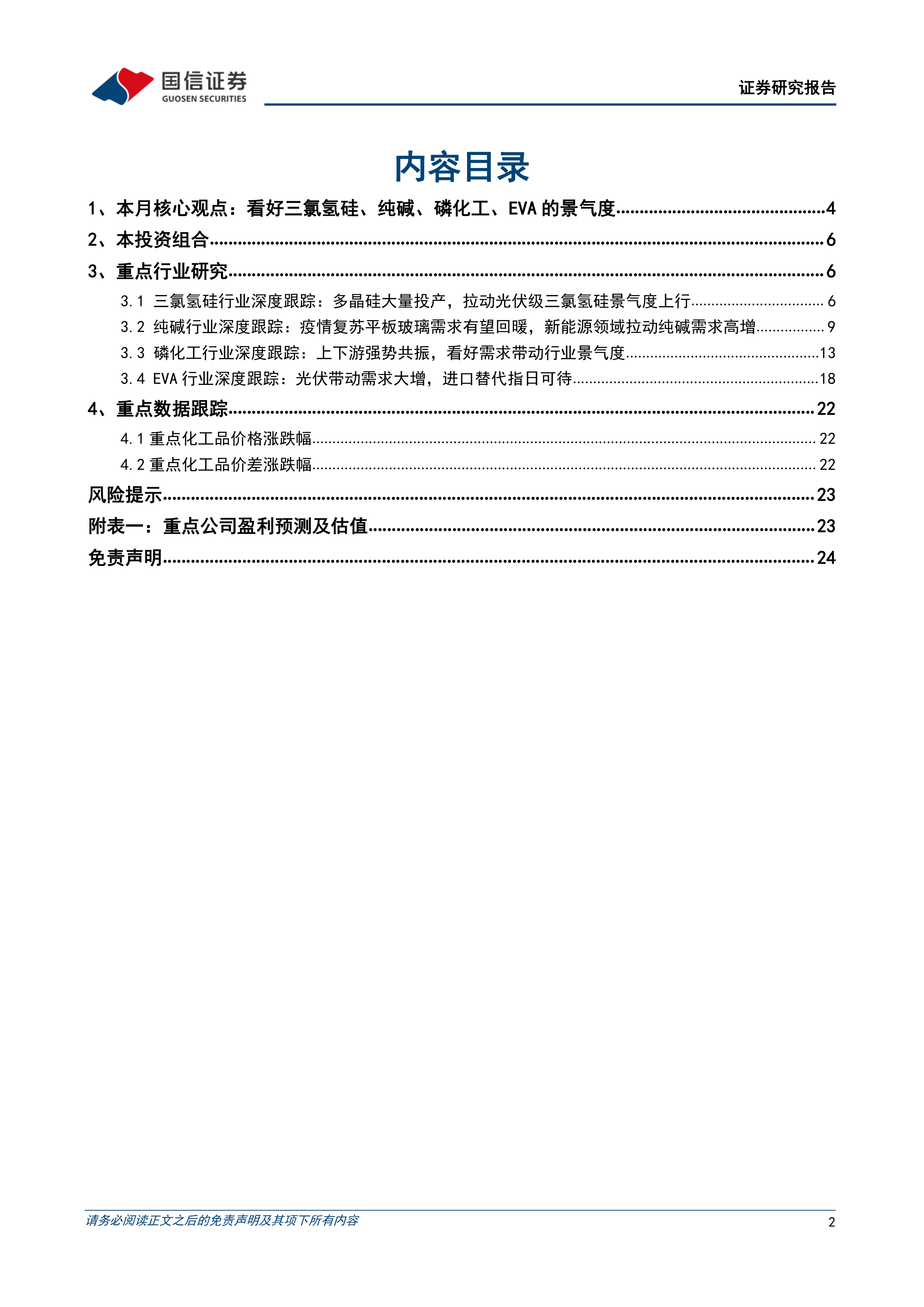 报告重点关注三氯氢硅、纯碱、磷化工和EVA四个行业,并对每个行业的供需关系、价格走势以及投资机会进行了深入分析。