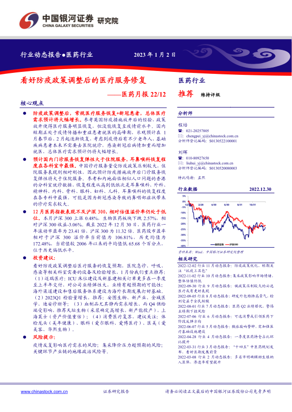 医药月报:看好防疫政策调整后的医疗服务修复