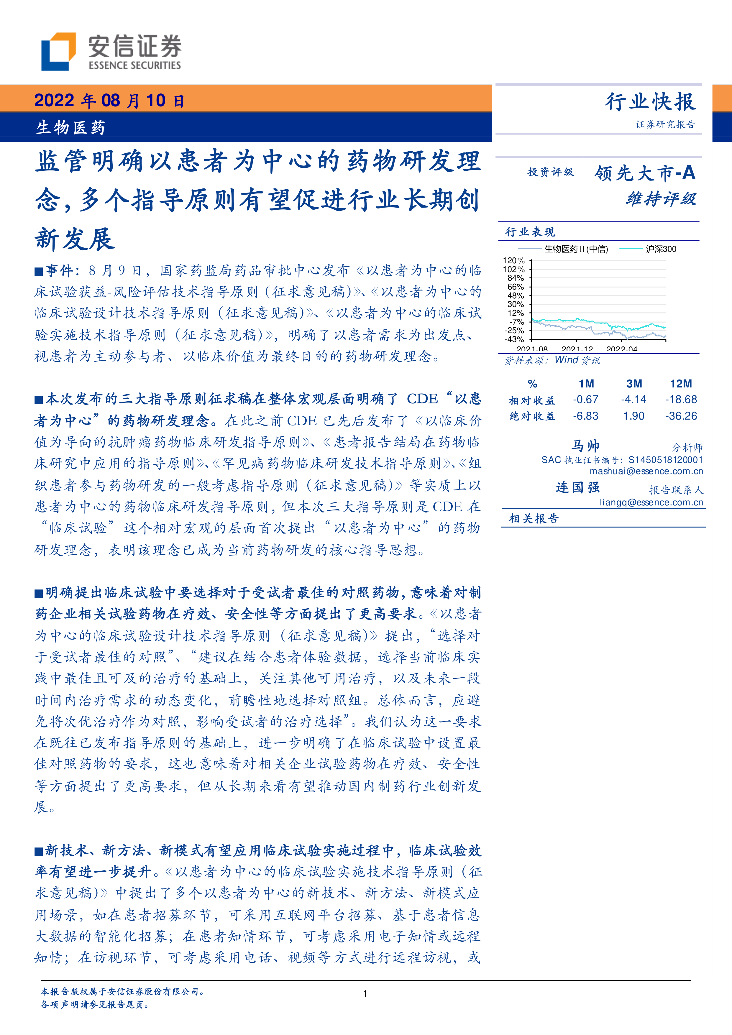 生物医药:监管明确以患者为中心的药物研发理念,多个指导原则有望促进行业长期创新发展