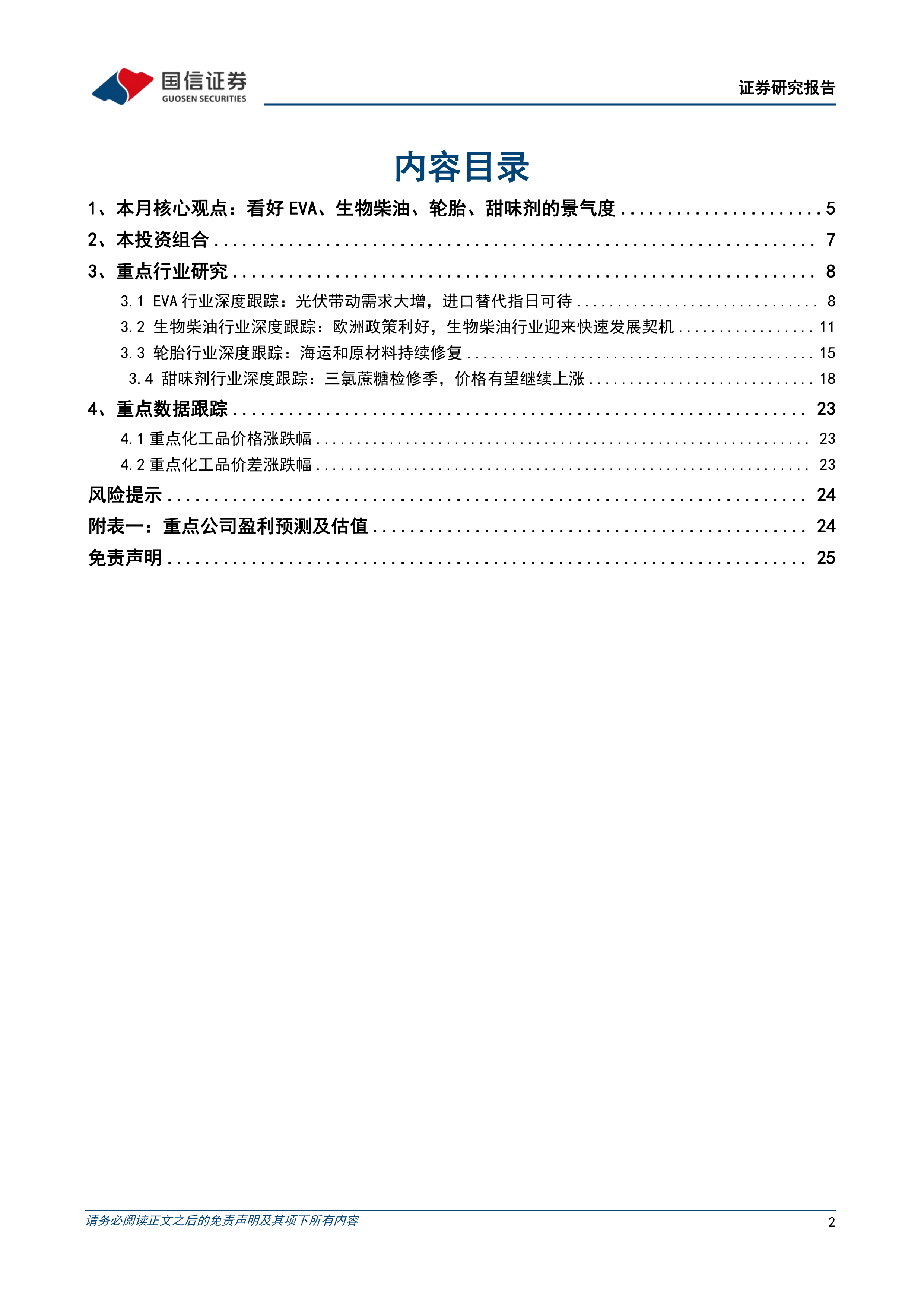 本报告基于对国际原油价格、宏观经济形势以及化工行业细分领域供需状况的分析,看好EVA、生物柴油、轮胎和甜味剂四大领域的景气度。 报告推荐的投资标的均具备较强的竞争优势和增长潜力,但投资者仍需关注原油价格波动、海外疫情以及需求不及预期等风险因素。 报告内容翔实,数据可靠,分析逻辑清晰,为投资者提供了有价值的投资参考。
