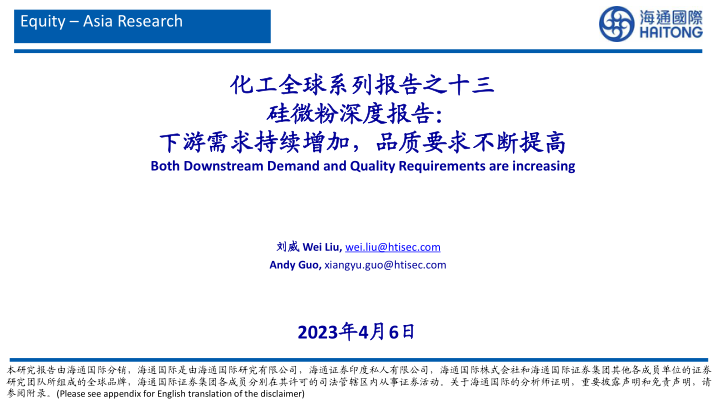 化工全球系列报告之十三:硅微粉深度报告:下游需求持续增加,品质要求不断提高