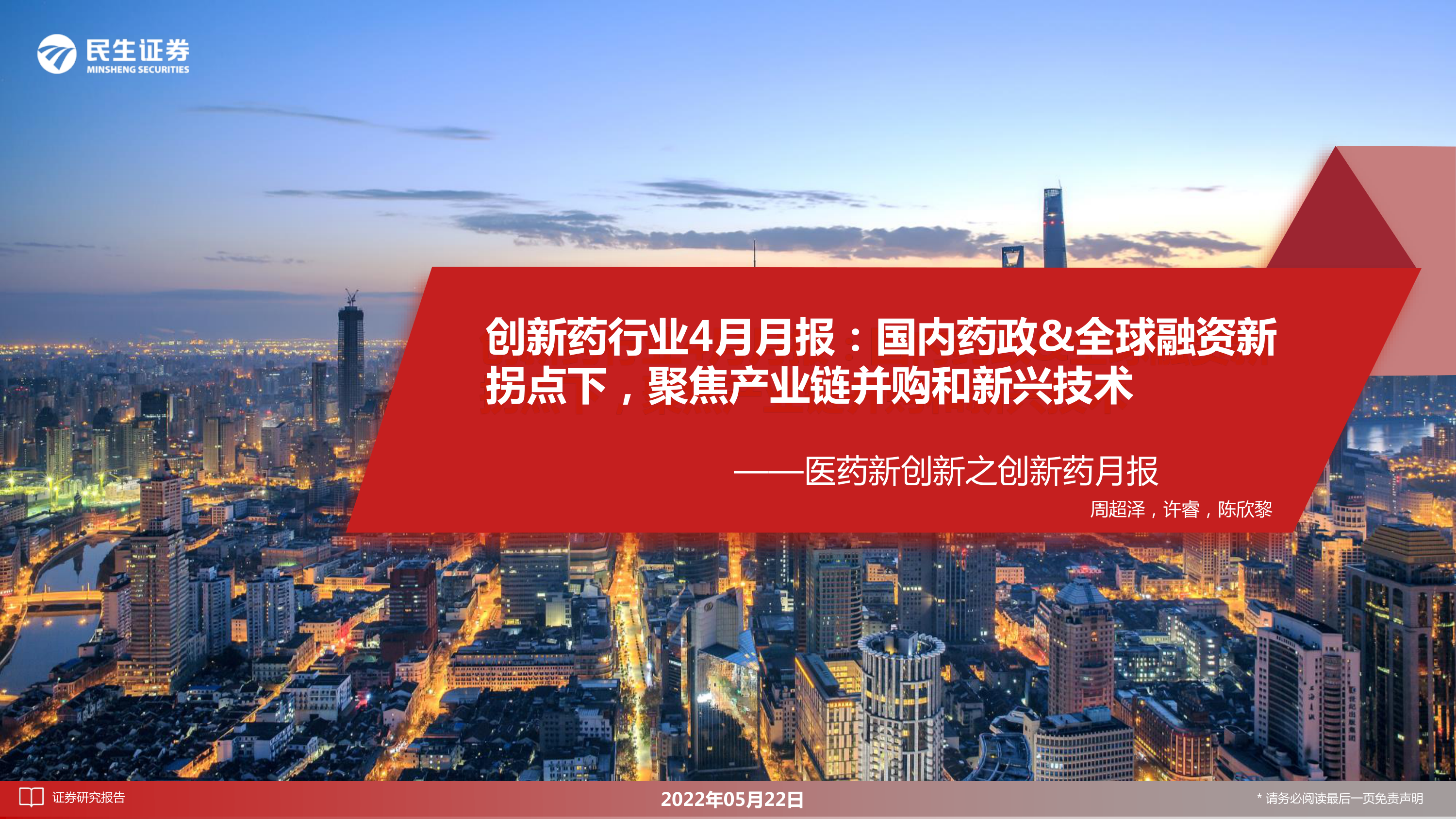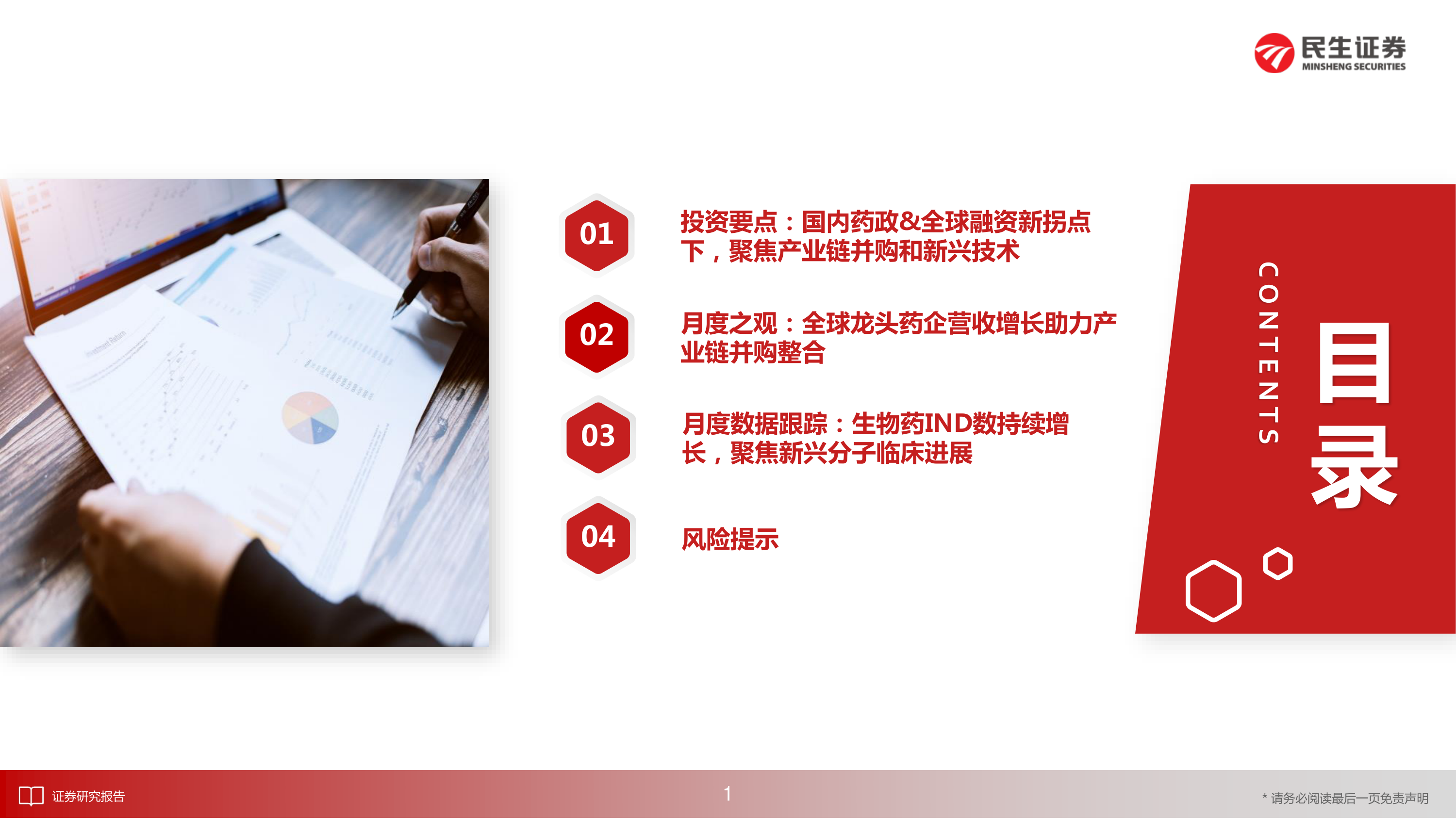 本报告基于公开数据,对国内外创新药市场进行了深入分析。报告指出,国内药政环境的转变和全球融资环境的变化,正驱动创新药产业链并购整合加速,以及新兴技术在创新药领域的应用。生物药,特别是ADC、干细胞疗法和CAR-T疗法等新兴技术领域,展现出强劲的增长势头。报告建议投资者关注具有下一代创新药龙头潜质的超跌公司,但同时也需警惕潜在的市场风险。 报告数据主要来源于Wind、医药魔方和民生证券研究院的预测,读者需注意数据来源及潜在的局限性。