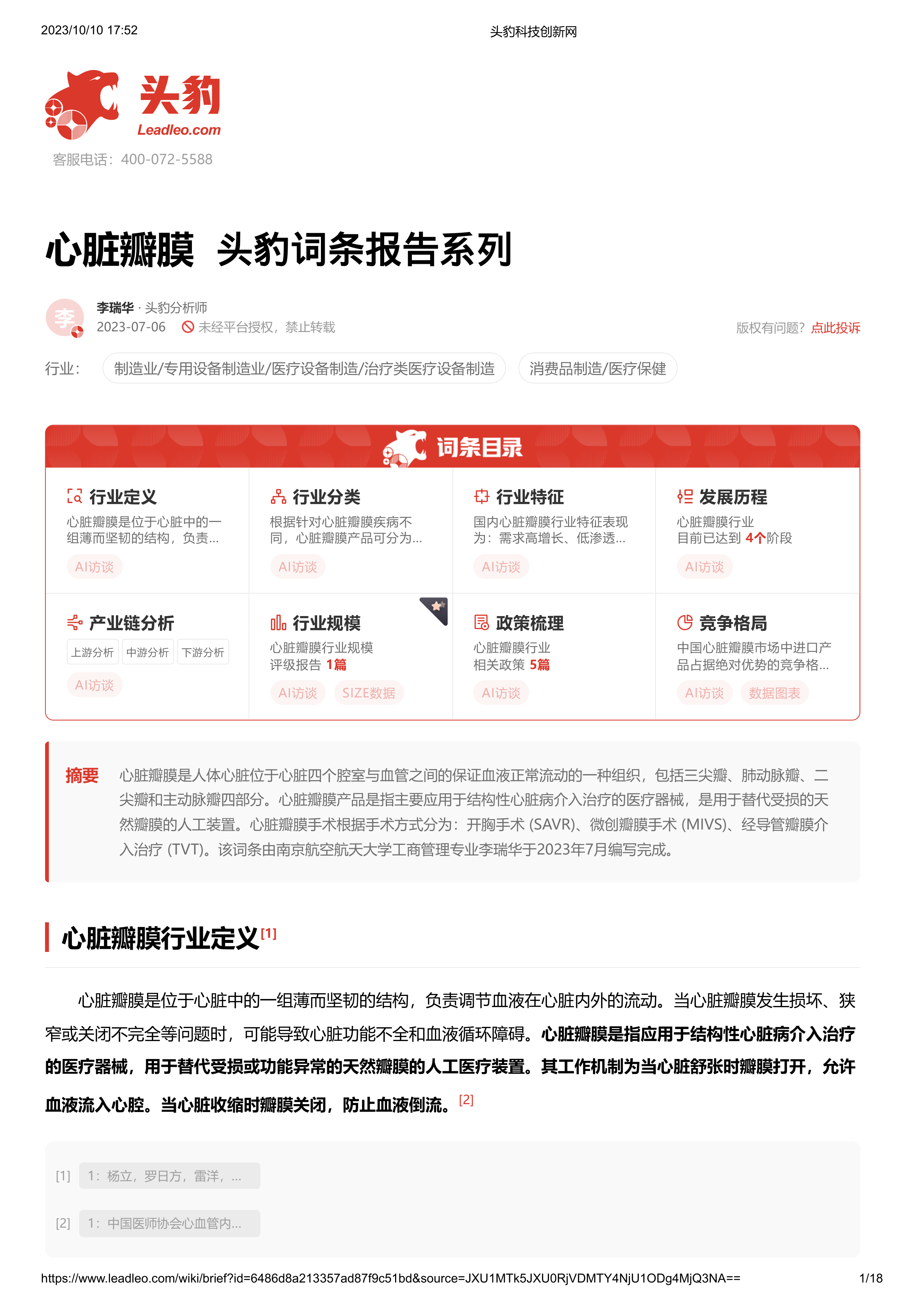 本报告基于头豹科技创新网提供的关于心脏瓣膜行业的词条报告,运用数据和统计分析方法,对中国心脏瓣膜市场进行深入解读。报告核心观点如下: