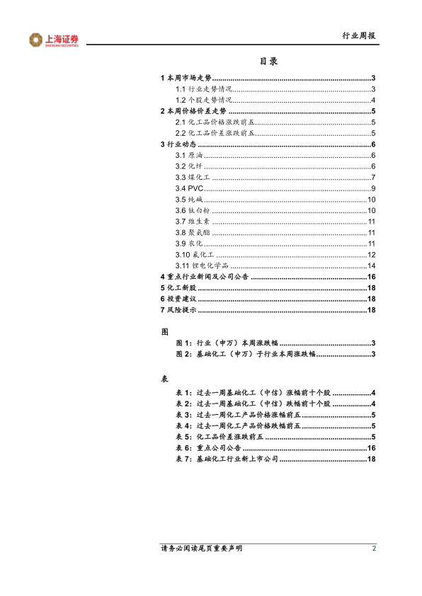 本报告按照目录结构,对基础化工行业周报的主要内容进行了数据分析和解读: