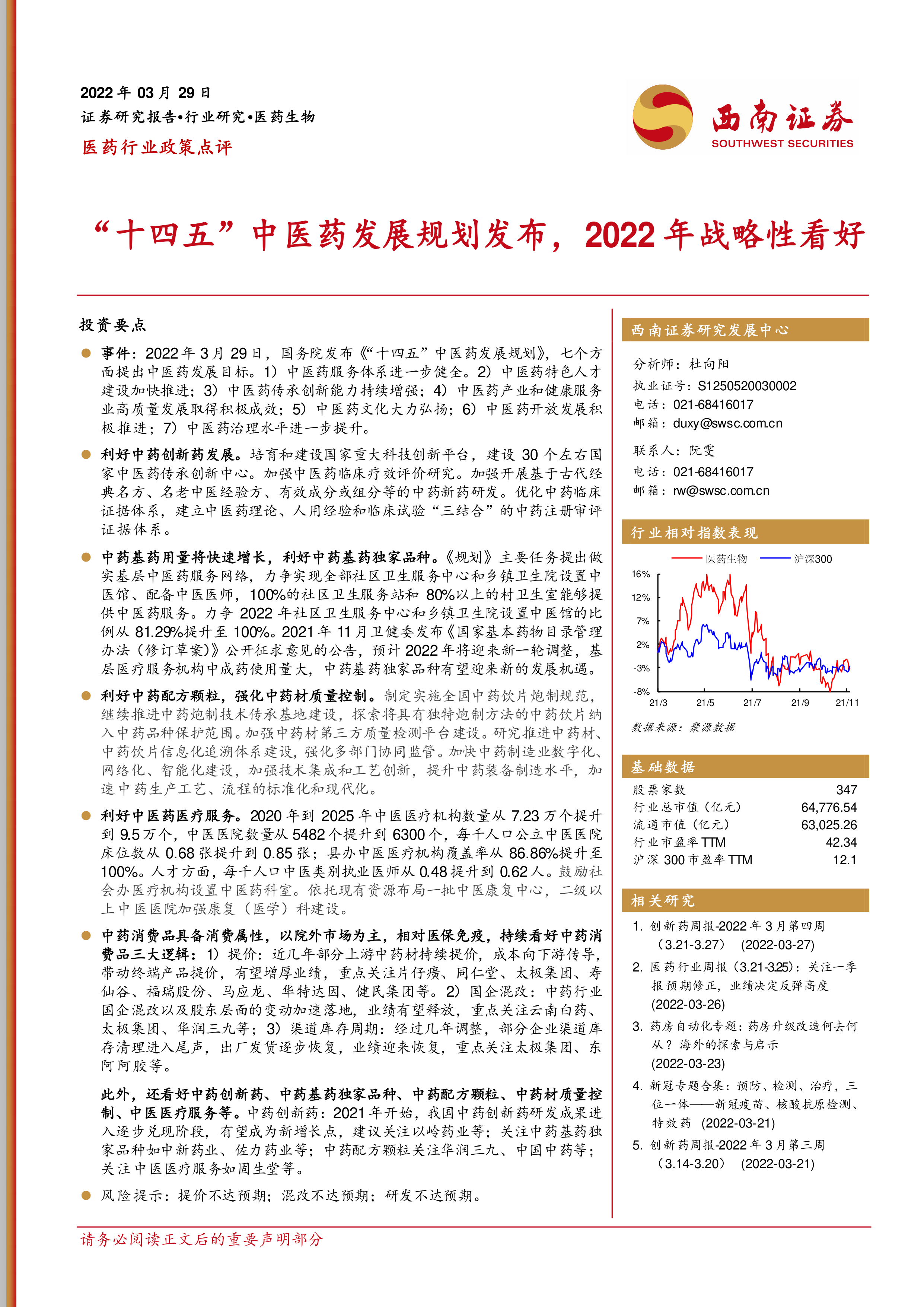 医药行业政策点评:“十四五”中医药发展规划发布,2022年战略性看好