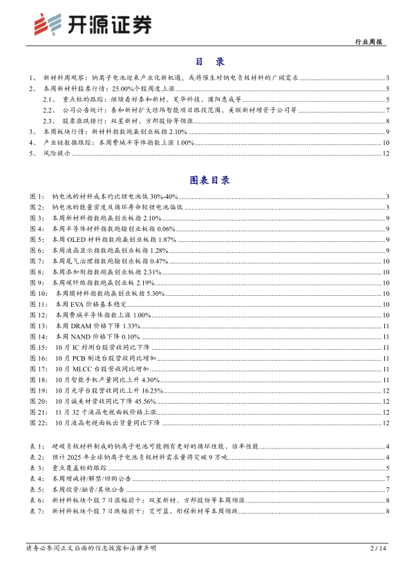 新材料行业周报:钠离子电池迎来产业化新机遇,或将催生对钠电负极材料的广阔需求