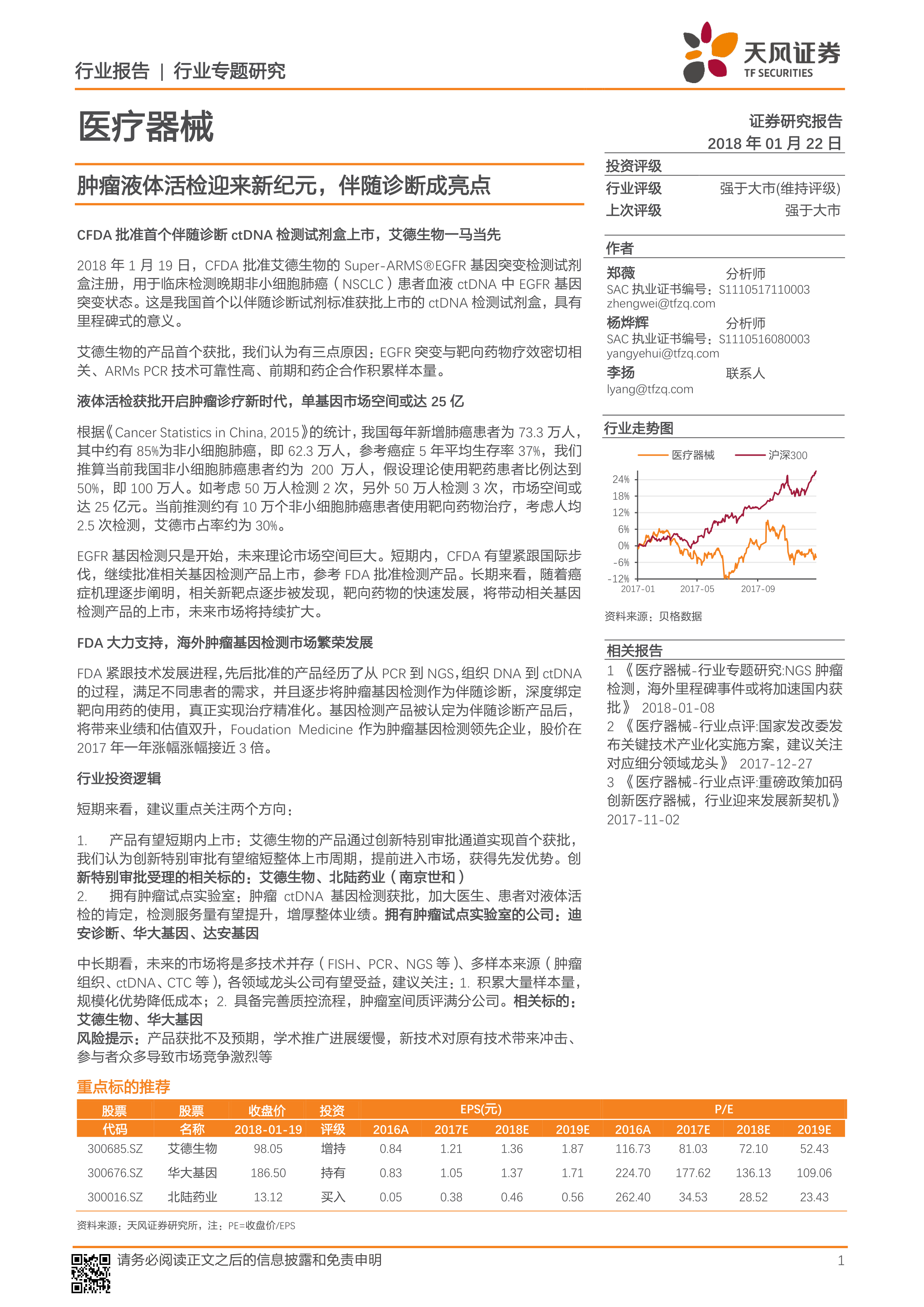 医疗器械行业专题研究:肿瘤液体活检迎来新纪元,伴随诊断成亮点
