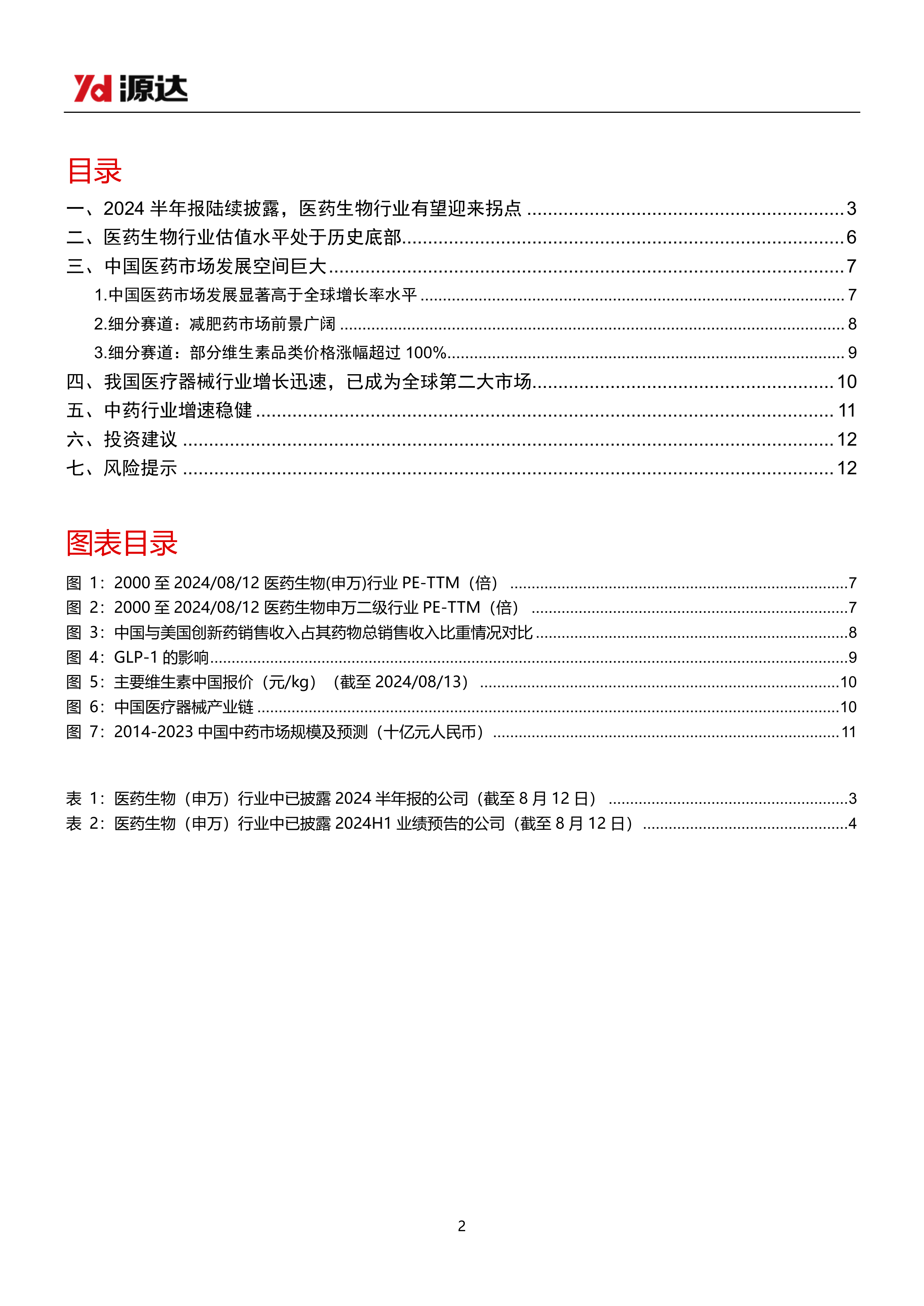 2024半年报陆续披露,医药生物行业有望迎来拐点