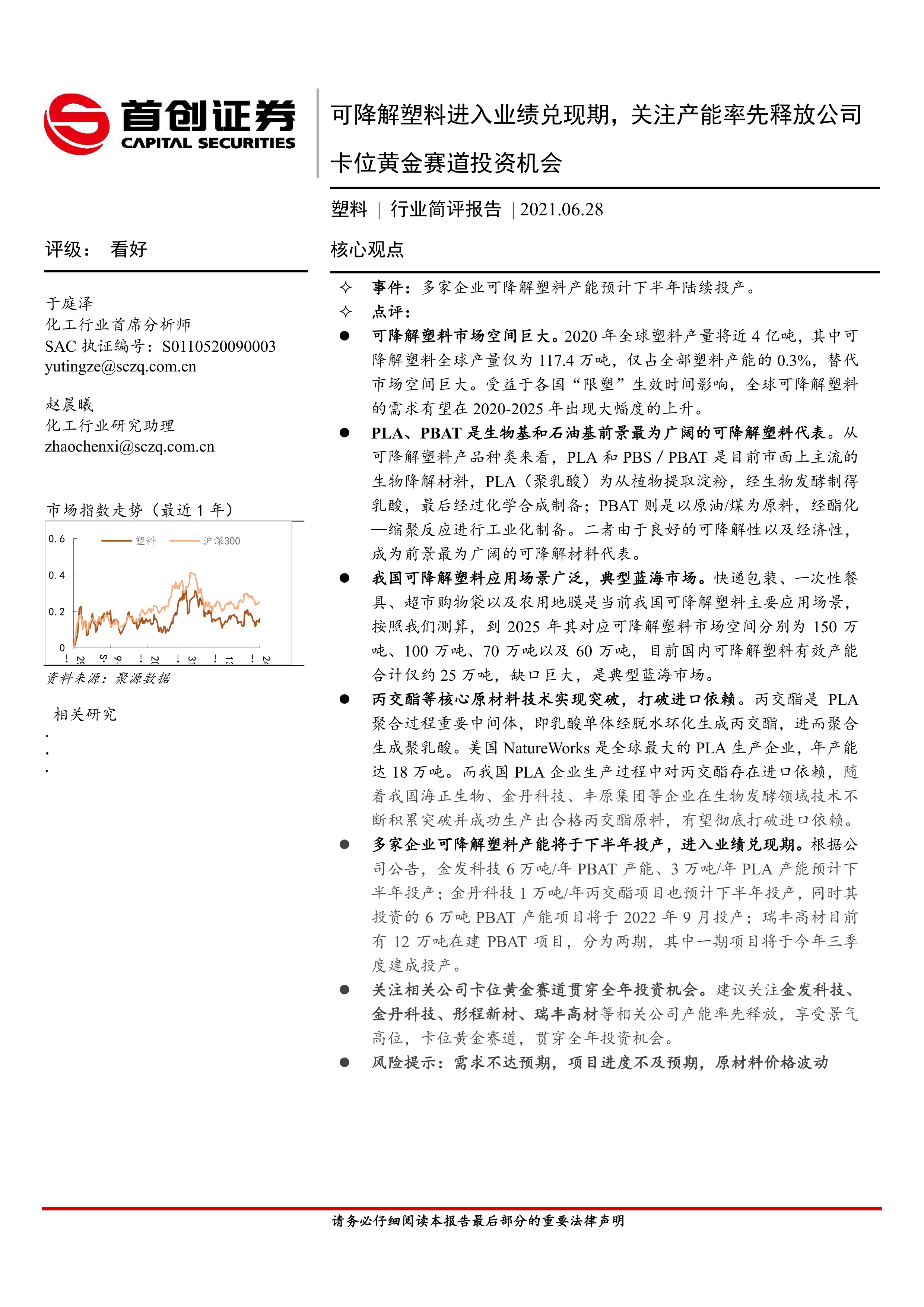 本报告从市场空间、技术突破、产能释放等多个维度分析了可降解塑料行业的投资机会。
