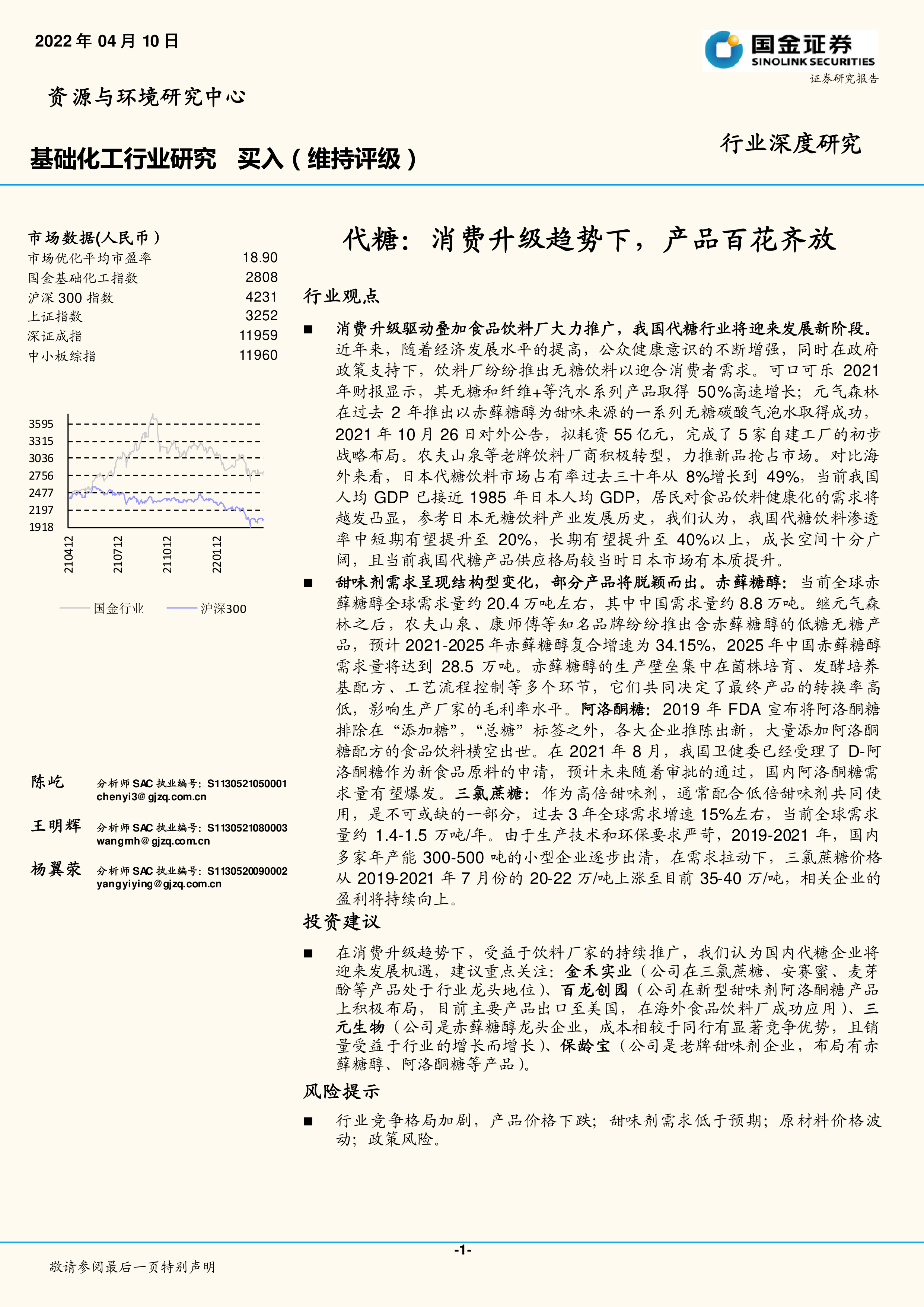 基础化工行业研究:代糖:消费升级趋势下,产品百花齐放