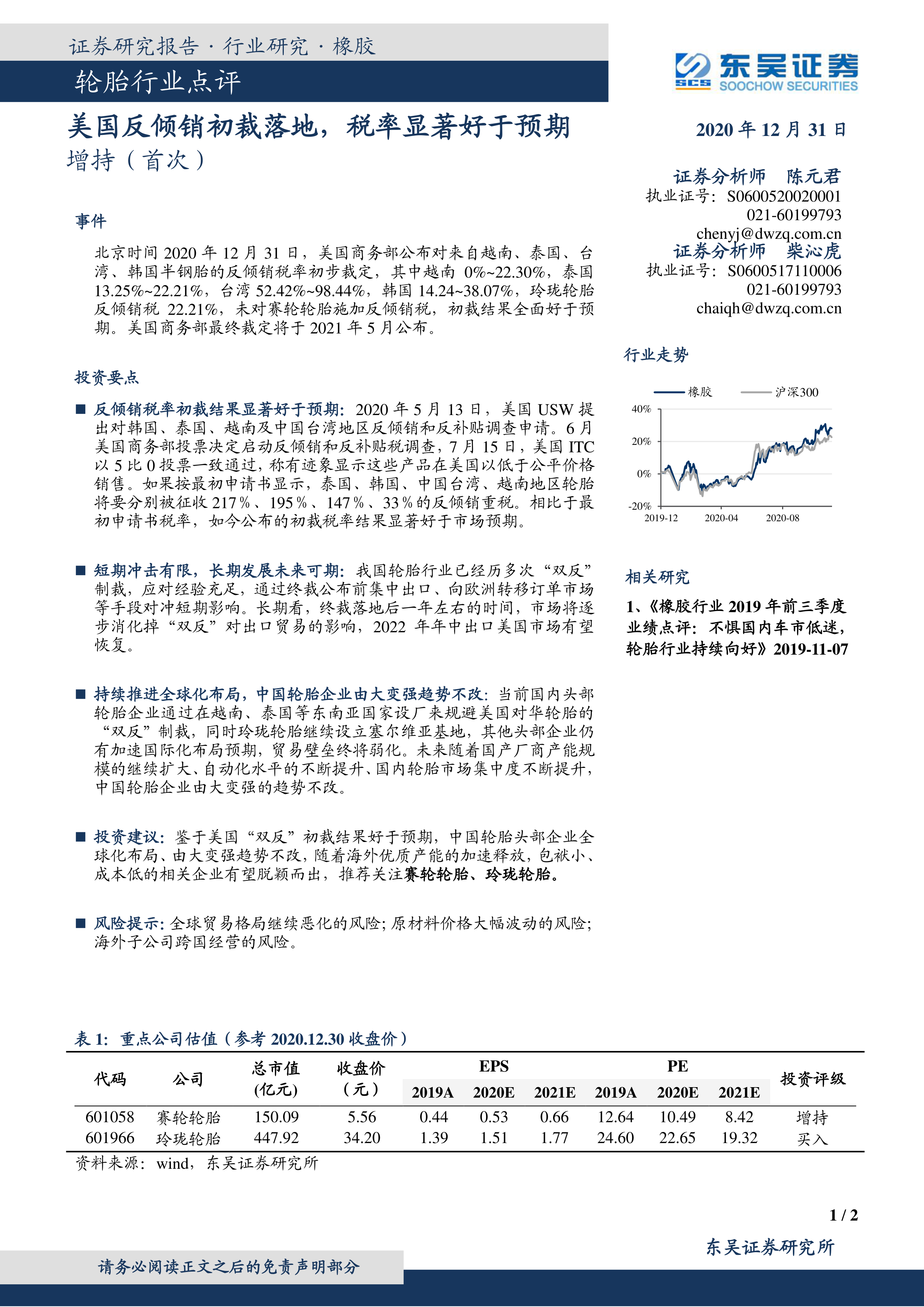 轮胎行业点评:美国反倾销初裁落地,税率显著好于预期