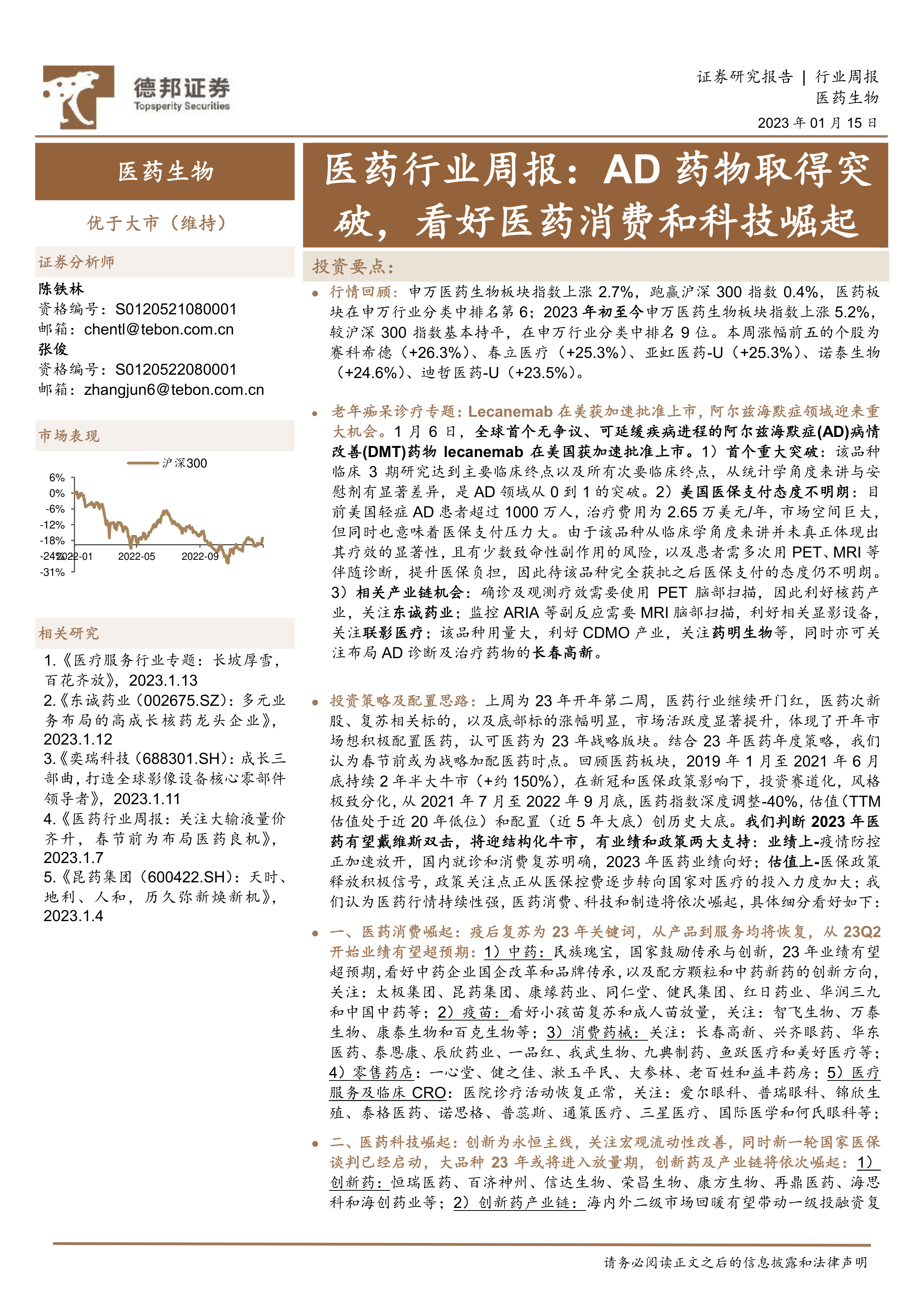 医药行业周报:AD药物取得突破,看好医药消费和科技崛起