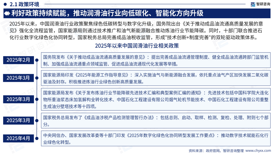 本报告基于智研咨询发布的《2025 中国润滑油行业市场供需态势及未来前景研判报告》,运用统计数据对中国润滑油行业市场进行分析,核心观点如下: