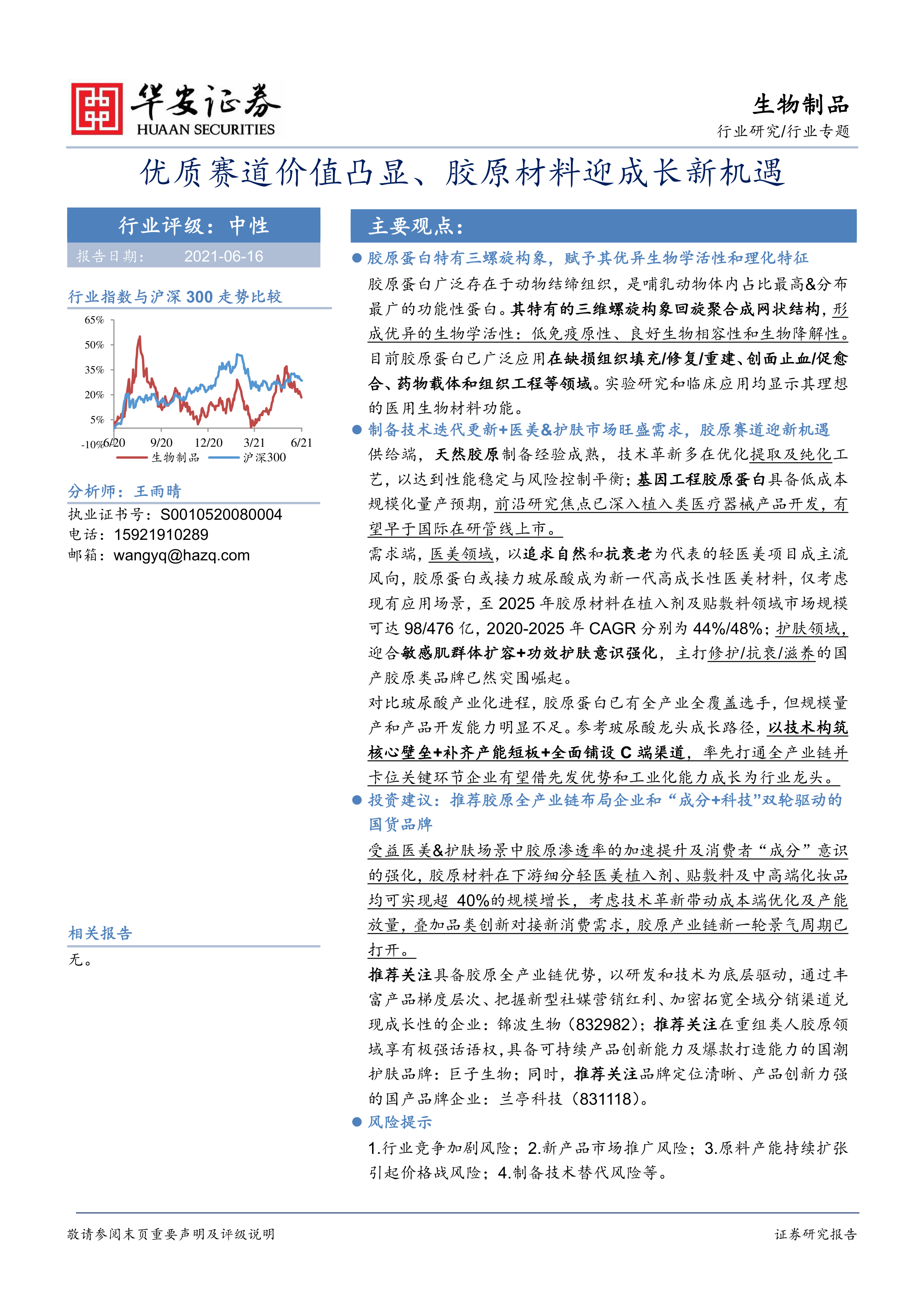 生物制品行业专题:优质赛道价值凸显、胶原材料迎成长新机遇