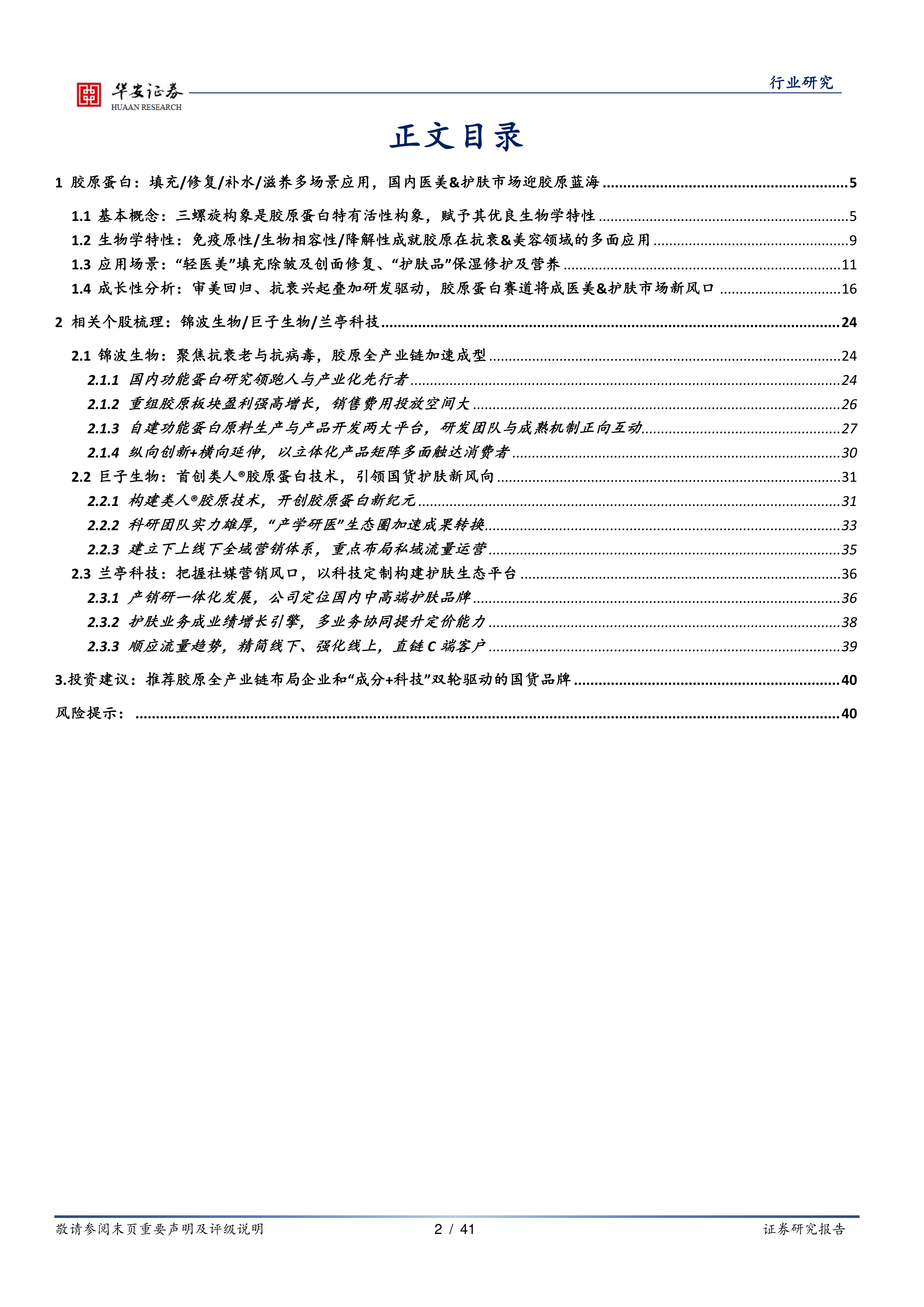 报告最后给出了投资建议,推荐关注胶原全产业链布局企业和“成分+科技”双轮驱动的国货品牌,并列出了相应的风险提示。