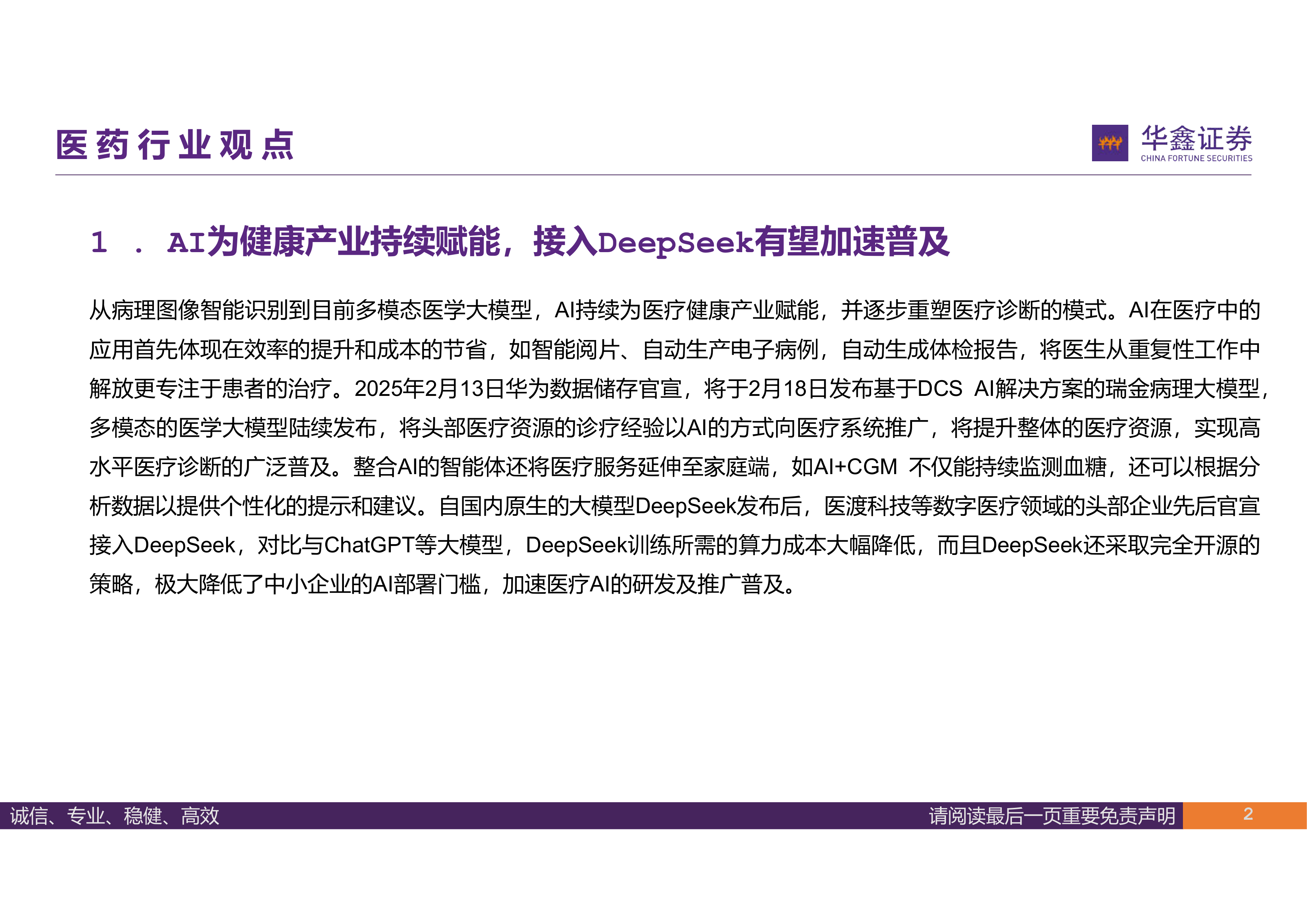 1.AI为健康产业持续赋能,接入DeepSeek有望加速普及
