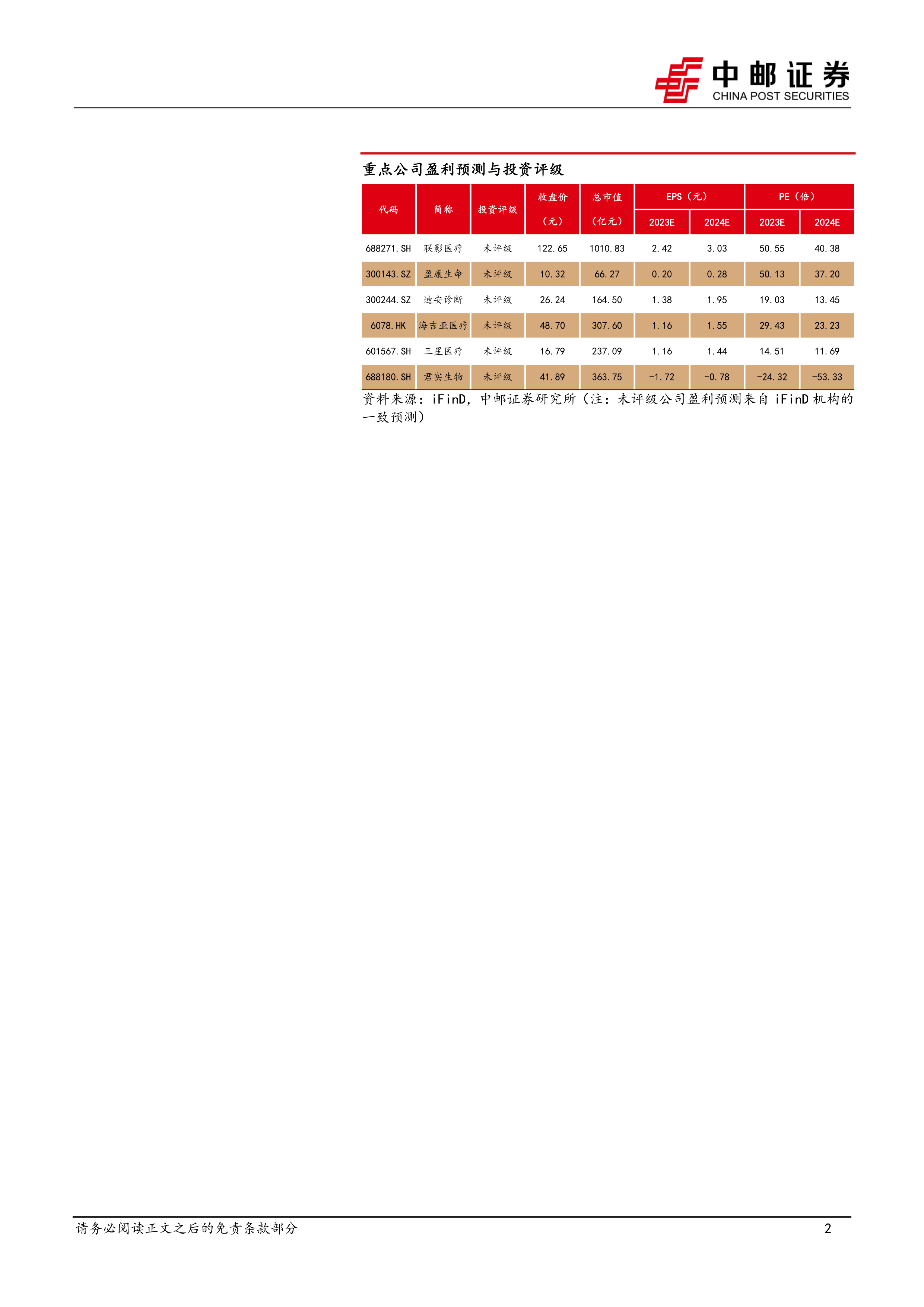 放化疗:是癌症治疗的主要手段,目前国内放化疗渗透率较低,未来渗透率有望得到提升,建议关注新华医疗、联影医疗、东软医疗、盈康生命。影像:是早期诊断的主要手段,目前高端医疗影像设备主要依赖进口,在政策的指引下国产替代进口趋势明显,建议关注联影医疗、万东医疗、迈瑞医疗、奕瑞科技、康众医疗。病理:是早期筛查的主要手段,国内肿瘤发病率持续提升,受益于国家癌症筛查的指引,建议关注安必平、迪安诊断、金域医学、润达医疗、兰卫医学。预防:在癌症高发地区和高风险人群中持续开展组织性筛查是有效的预防肿瘤的手段。建议关注美年健康、迪安诊断、金域医学、艾德生物。护理、康复、安宁疗护:肿瘤民营专科医院有望发挥其差异化优势,为肿瘤患者提供规范化诊疗供给。建议关注海吉亚医疗、信邦制药、三星医疗。儿童肿瘤:近年来儿童肿瘤增长较快,受到WHO和国家的重视,并且儿童肿瘤药物存在缺口,建议重点关注百济神州、亿帆医药、君实生物、恒瑞医药。