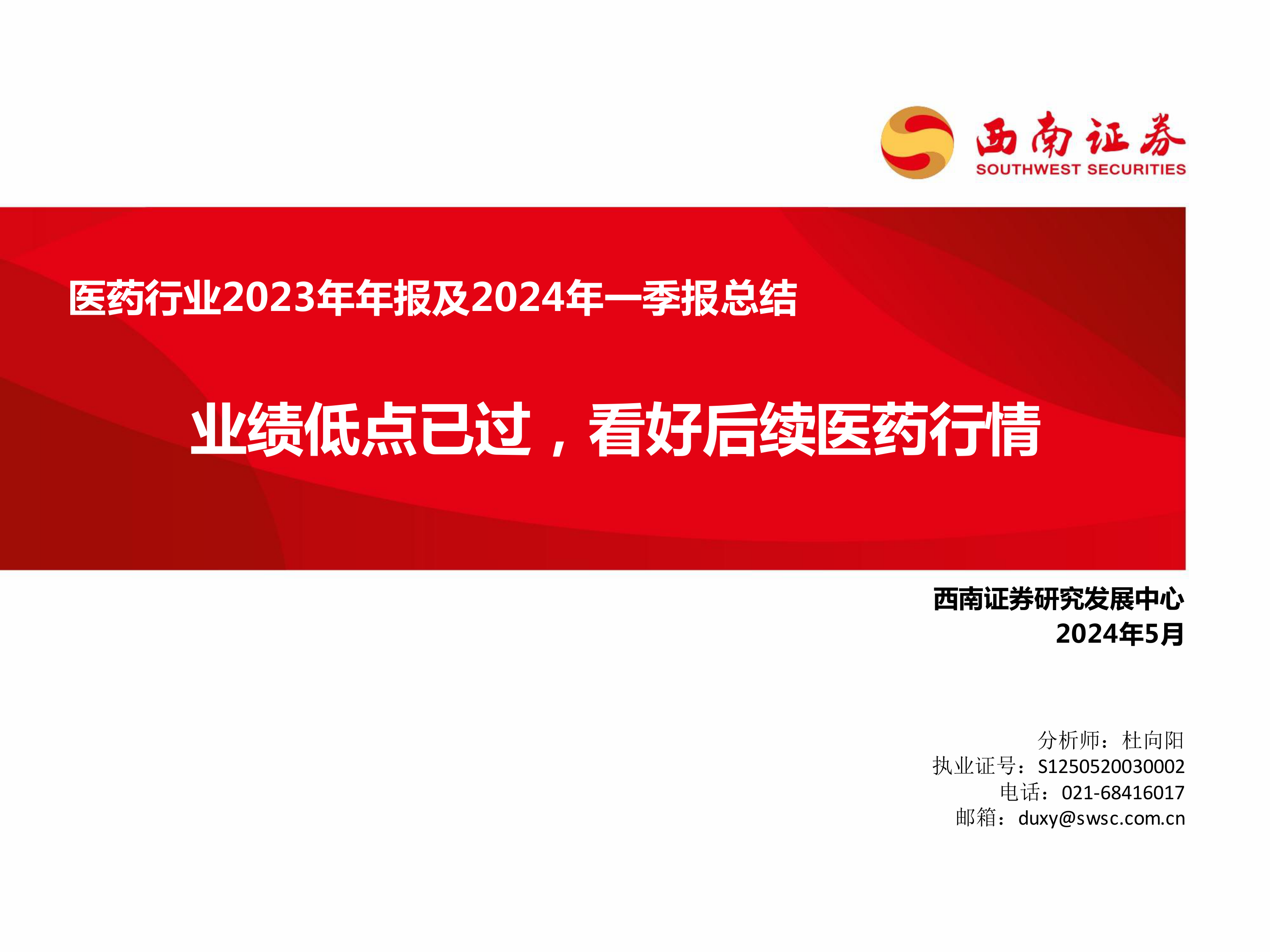 医药行业2023年年报及2024年一季报总结:业绩低点已过,看好后续医药行情