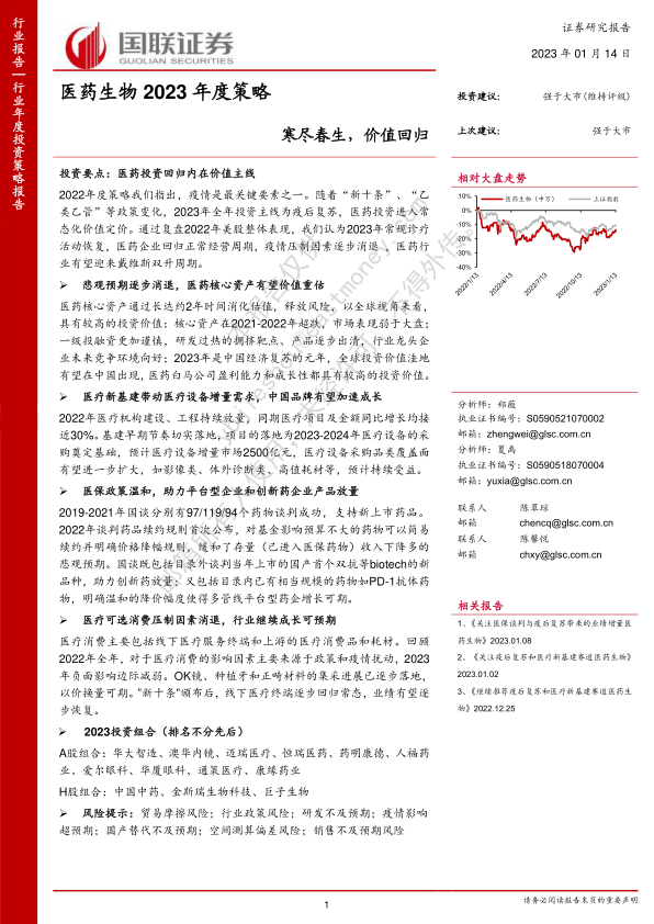 医药生物2023年度策略:寒尽春生,价值回归