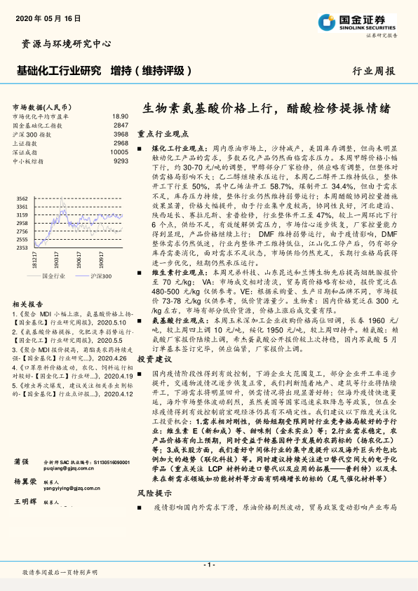 本报告以2020年5月16日为时间节点,对基础化工行业进行周报分析,内容涵盖市场数据、重点行业观点以及投资建议。