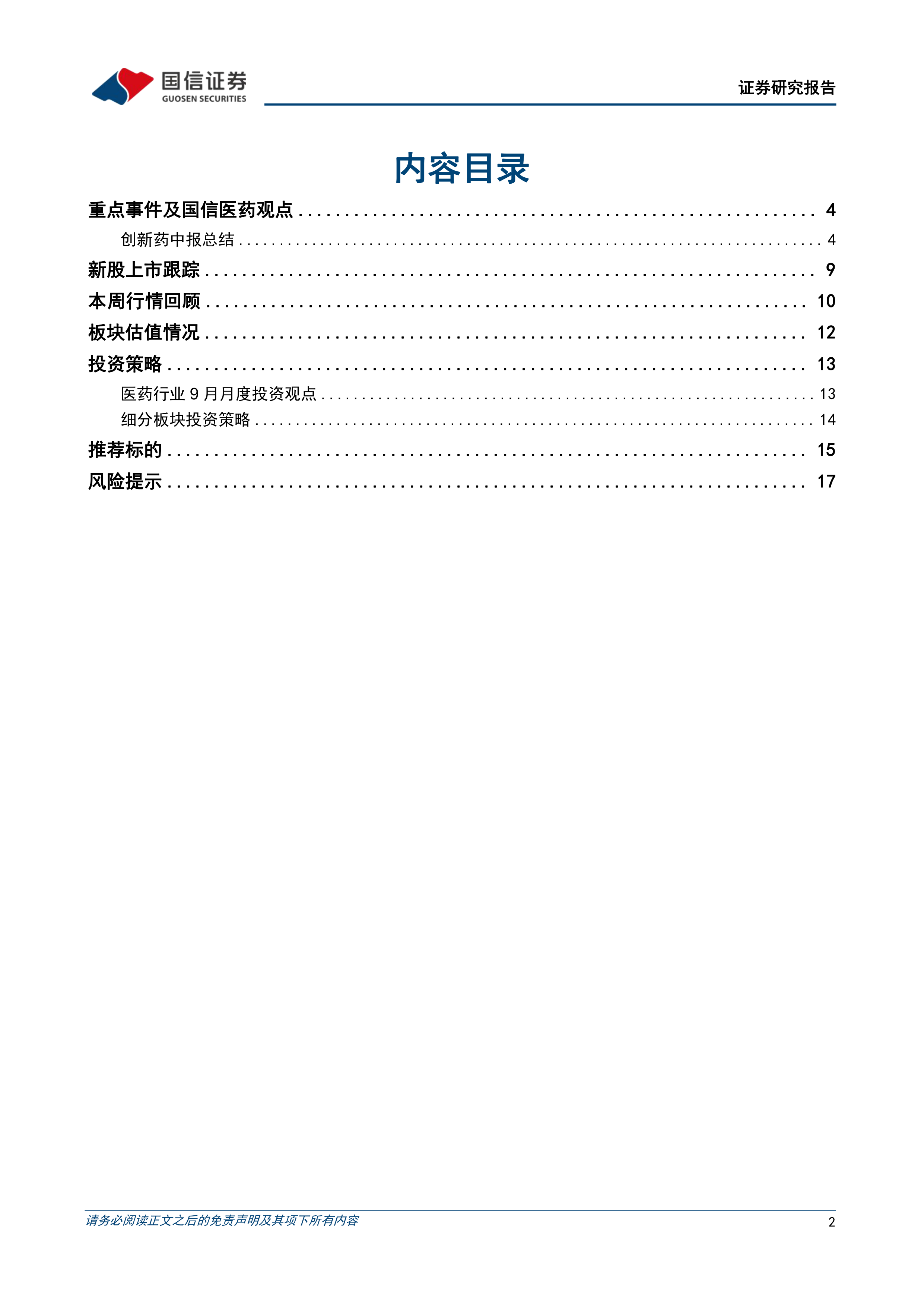 风险提示:药品、器械研发失败风险;药品、器械商业化不及预期风险;竞争格局变化风险;药品耗材集采未中标或降幅超预期风险。