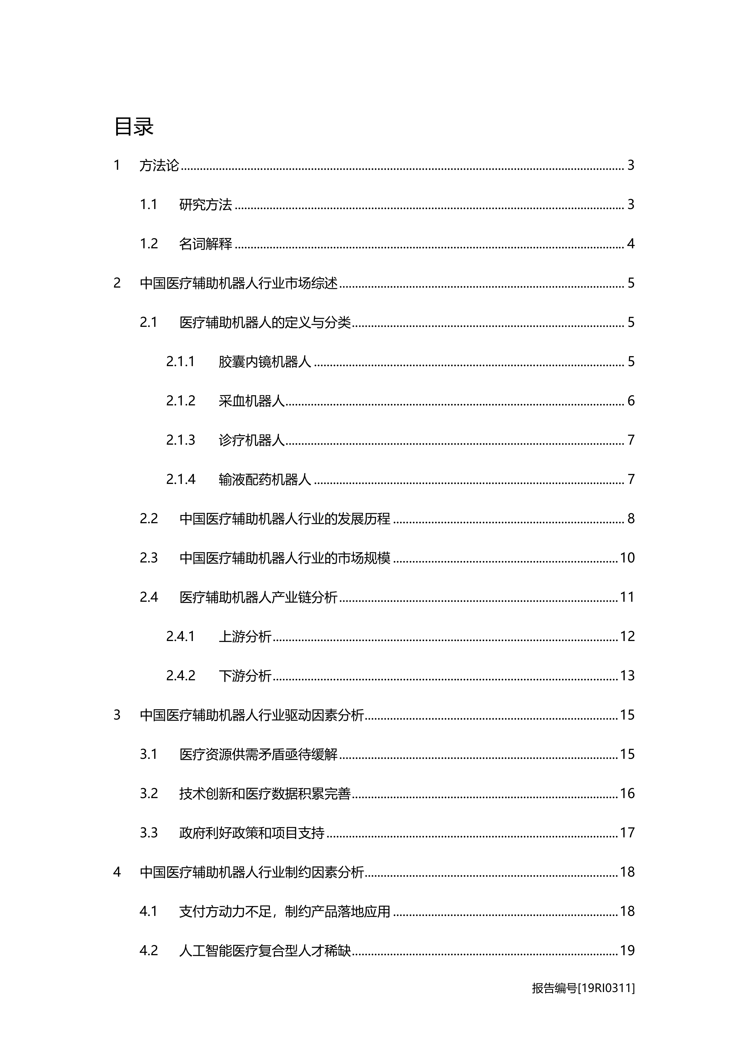 本报告从多个维度分析了中国医疗辅助机器人行业,主要内容包括:
